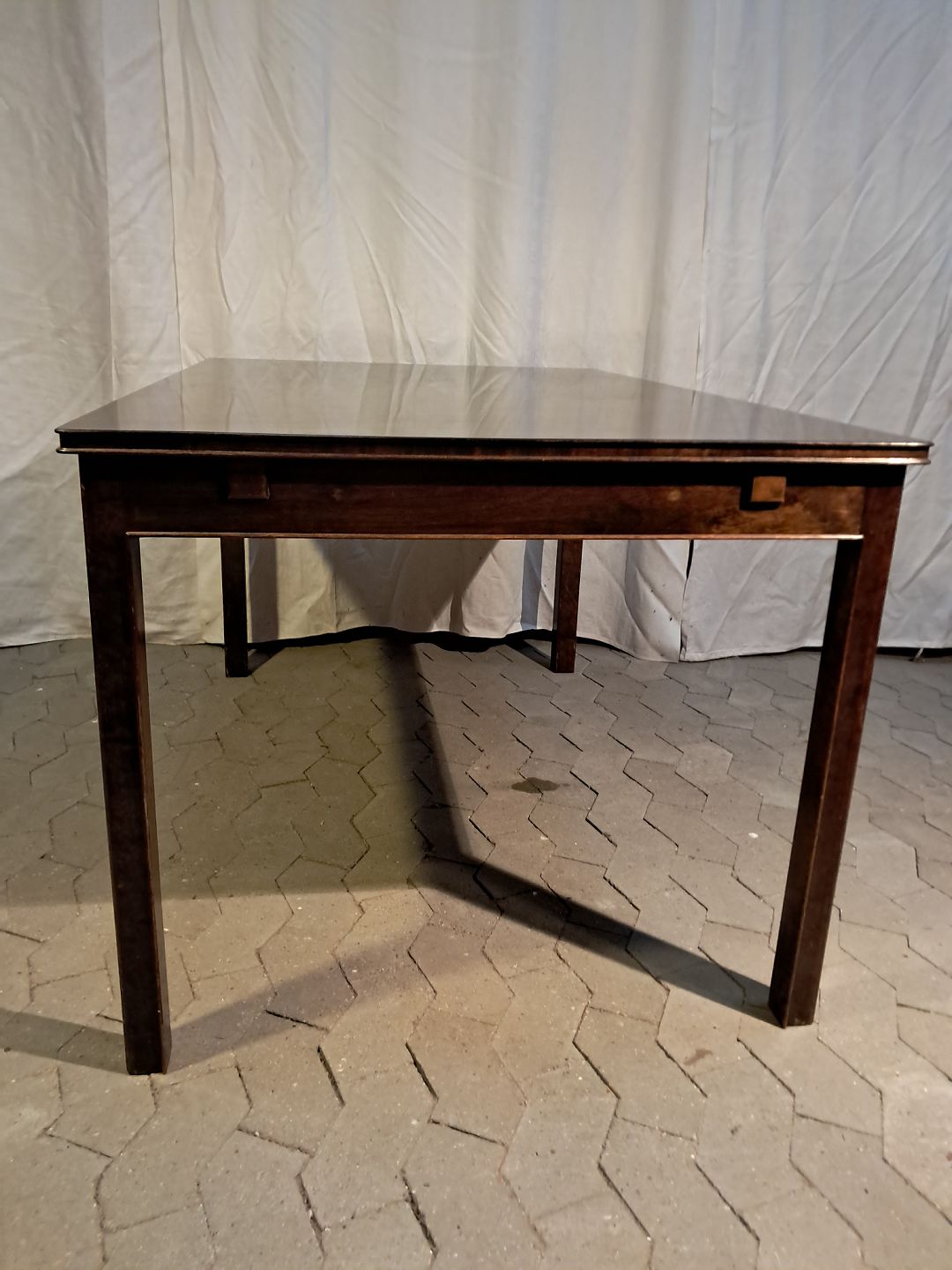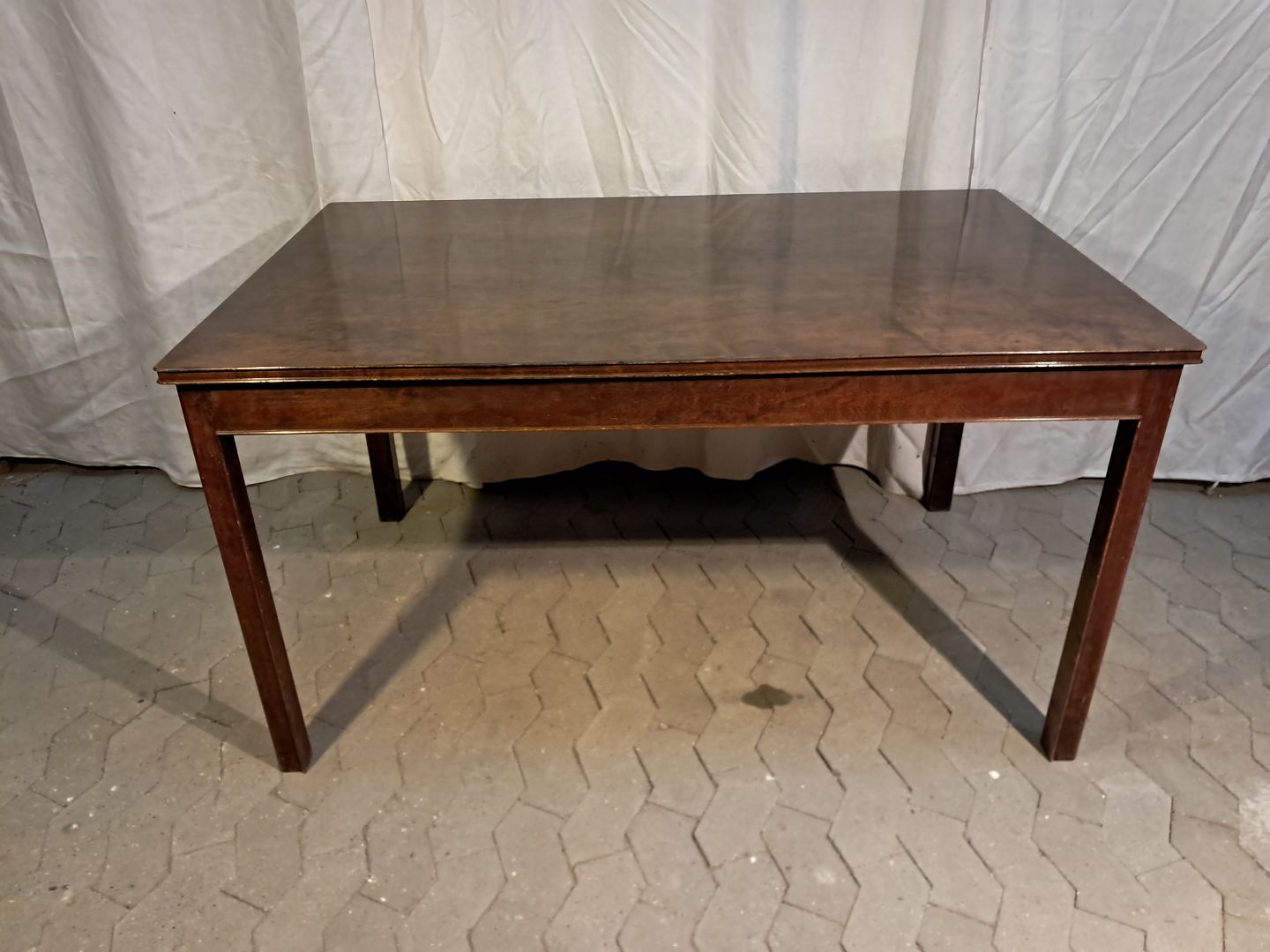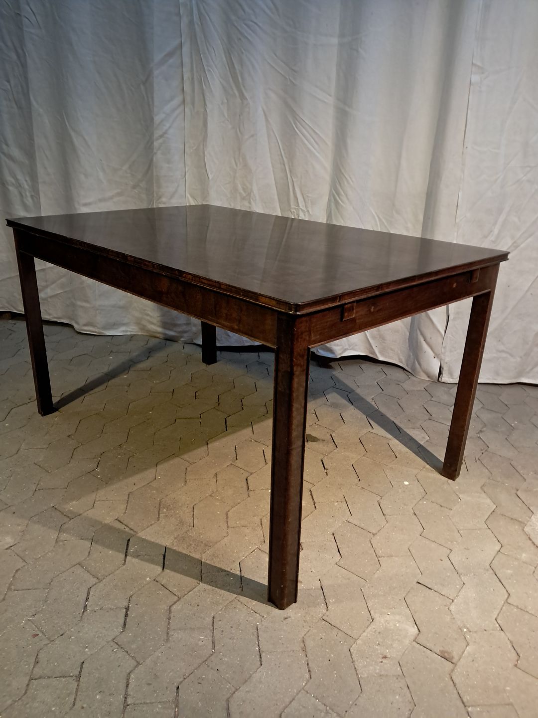 Spisebord i fineret birketræ med 2 tillægsplader, fra 1930erne. Det har brugsspor. Højde 75cm Bredde 90cm Længde 140cm Længde med tillægsplader 260cm Emne nummer: 91896