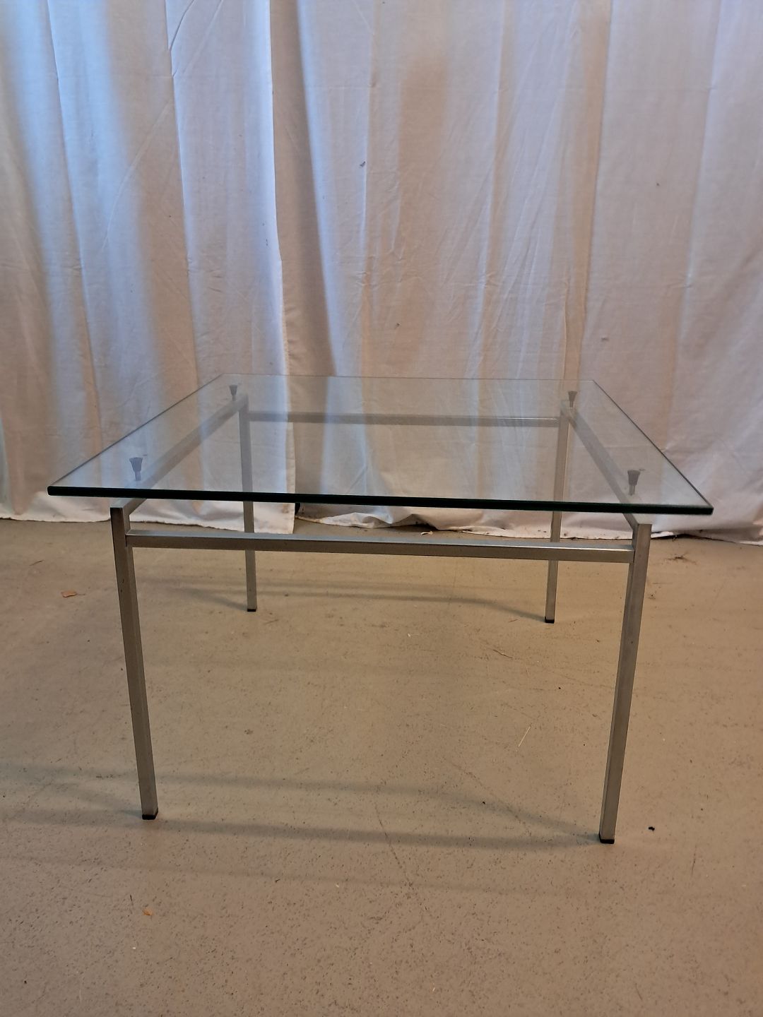 Lille sofabord i metal og glas, fra 2010erne. Det har brugsspor. Højde 41cm Bredde 63cm Længde 63cm Emne nummer: 77218
