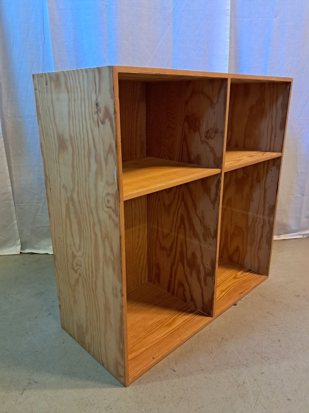 Reolkasse i krydsfiner, fra 2000erne. Den har brugsspor og der medfølger ikke ophæng. Højde 70cm Bredde 70cm Dybde 30cm Emne nummer: 77245