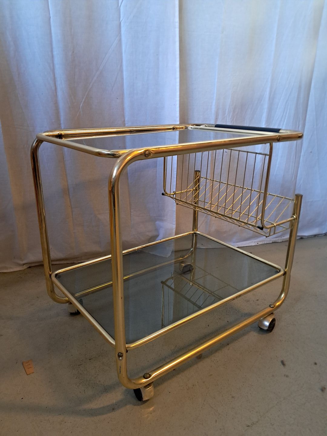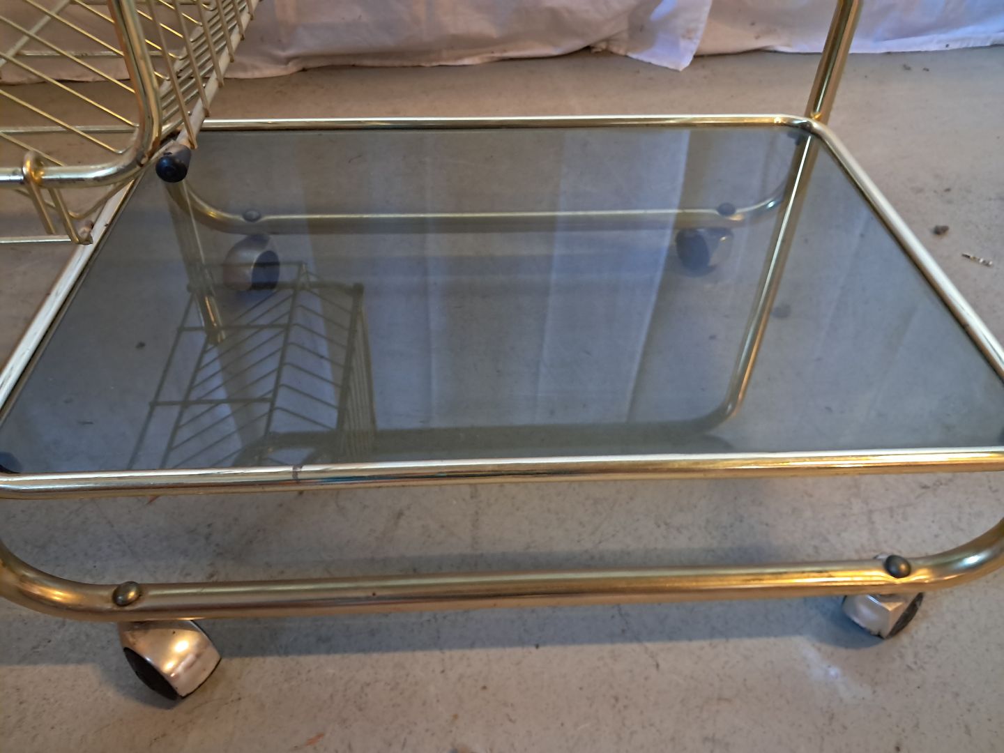 Rullebord i metal og glas, fra 1990erne. Det har brugsspor og mangler en gummi dut.(se foto) Højde 60cm Bredde 45cm Længde 64cm Emne nummer: 77253