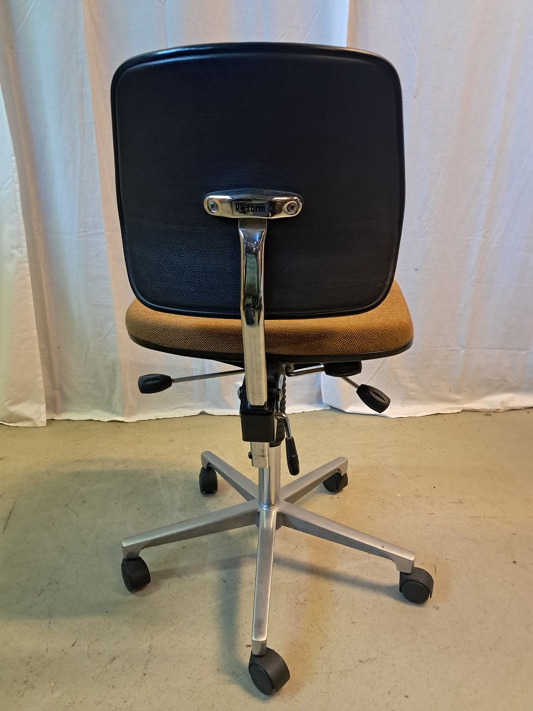 Kontorstol i metal, fra 1990erne. Den har brugsspor. Variabel højde, på foto : Ryghøjde 94cm Sædehøjde 59cm Emne nummer: 77315