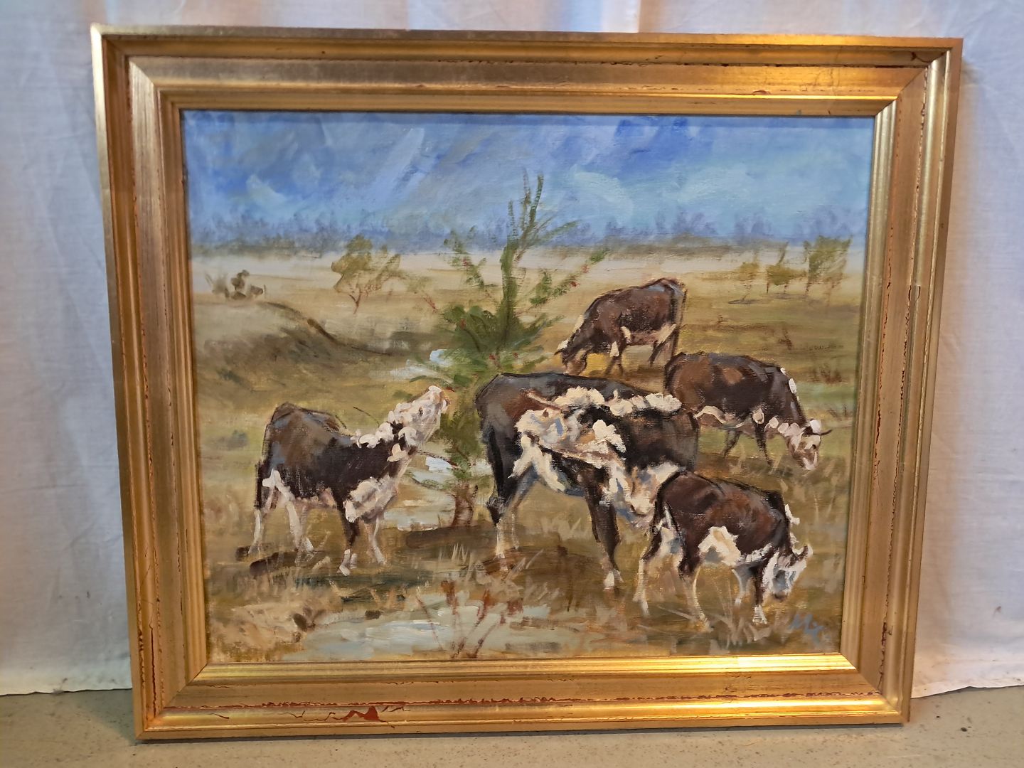 Maleri i guldmalet ramme af : Mogens Amdi Thorsen (1924-2016) Det har brugsspor. Højde 61cm Bredde 71cm Emne nummer: 77326