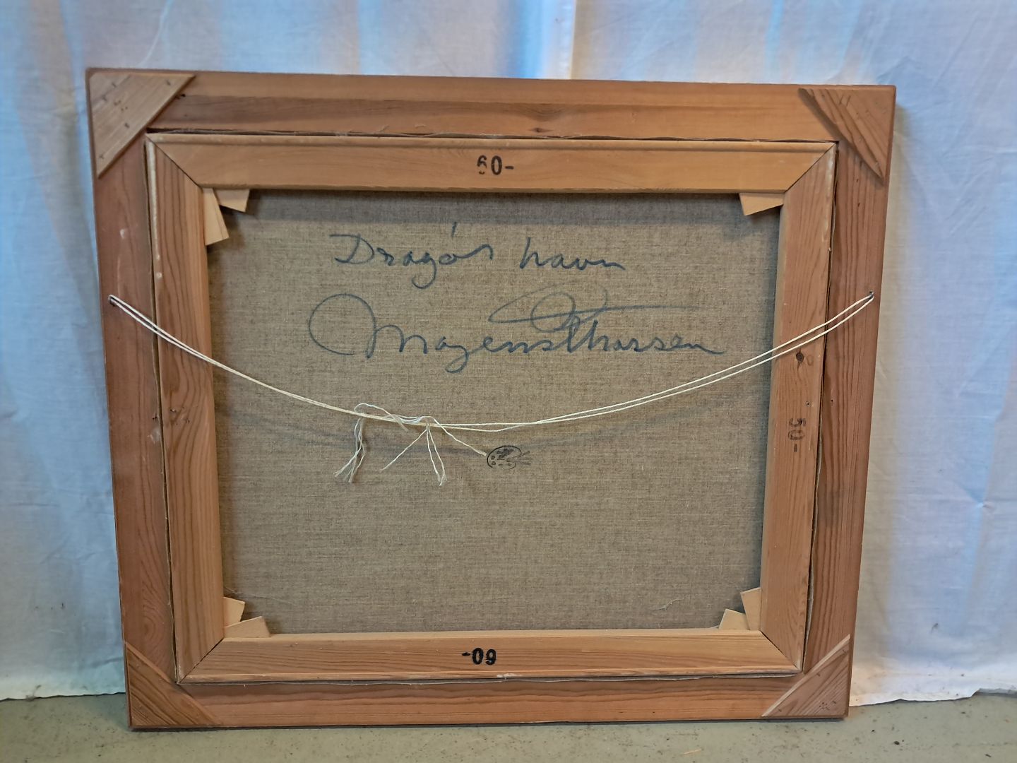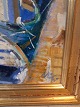 Maleri af Dragør havn i guldmalet ramme, af : Mogens Amdi Thorsen (1924-2016) Det har brugsspor. Højde 60cm Bredde 71cm Emne nummer: 77327
