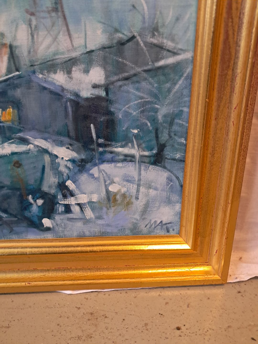 Maleri af Dragør Havn i guldmalet ramme, af : Mogens Amdi Thorsen (1924-2016) Det har brugsspor. Højde 46cm Bredde 61cm Emne nummer: 77330