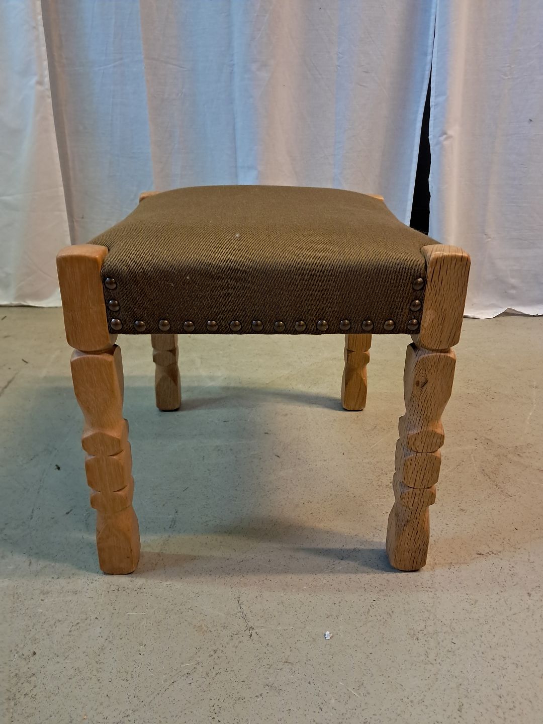 Skammel i massivt egetræ, fra 1980erne. Den har brugsspor. Højde 37cm Bredde 41cm Dybde 36cm Emne nummer: 77417