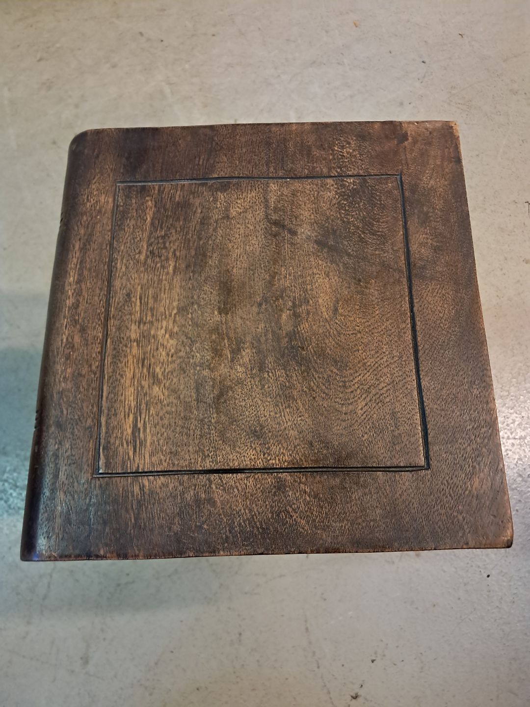 Piedestal i massivt egetræ, fra 1990erne. Den har brugsspor. Højde 51cm Bredde 32cm Dybde 32cm Emne nummer: 77448