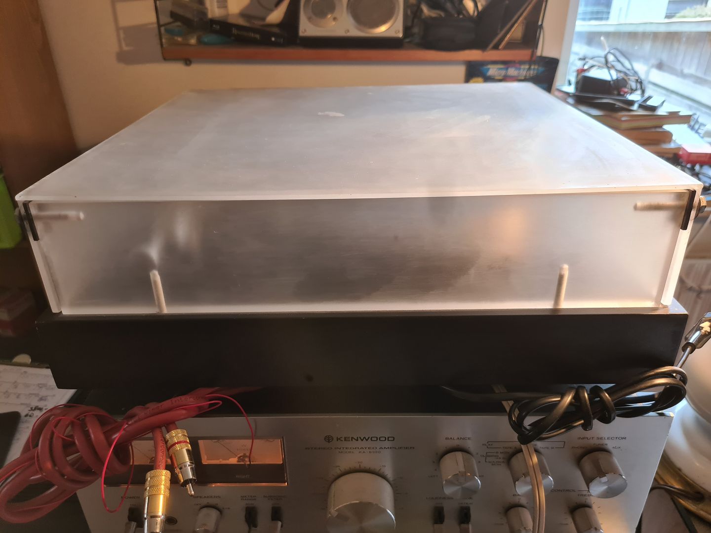 Vintage pladespiller H. H. Mørch model GS 6 i sort trækabinet. Testet og kører måske en anelse ujævnt hastighedsmæssigt, men starter ellers fint op. Hastighedsknop virker ligeledes fint. Kommer med Mørch tonearm model UP4 monteret med DACAPO pickup ligeledes fra Mørch. Derudover originalt cover.