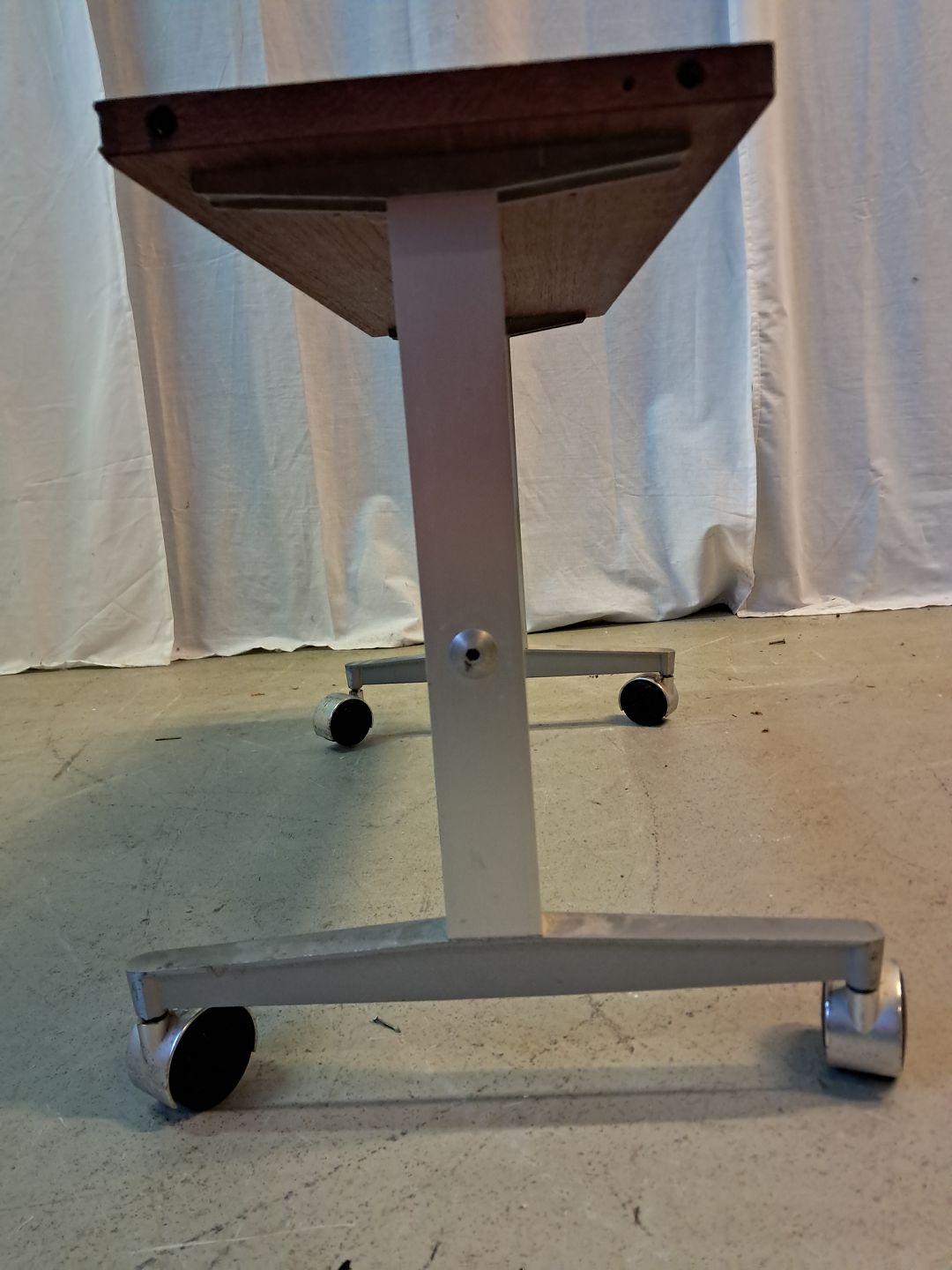 Bord i aluminium med fineret plade i teaktræ, fra 1980erne. Det har brugsspor. Højde 41cm Bredde 25cm Længde 61cm Emne nummer: 77471