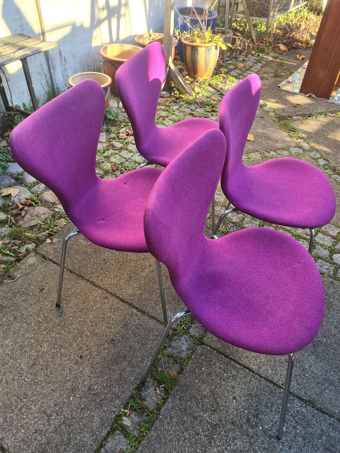 Arne Jacobsen sæt af 4 Syver stole model 3107. Udført hos Fritz Hansen.