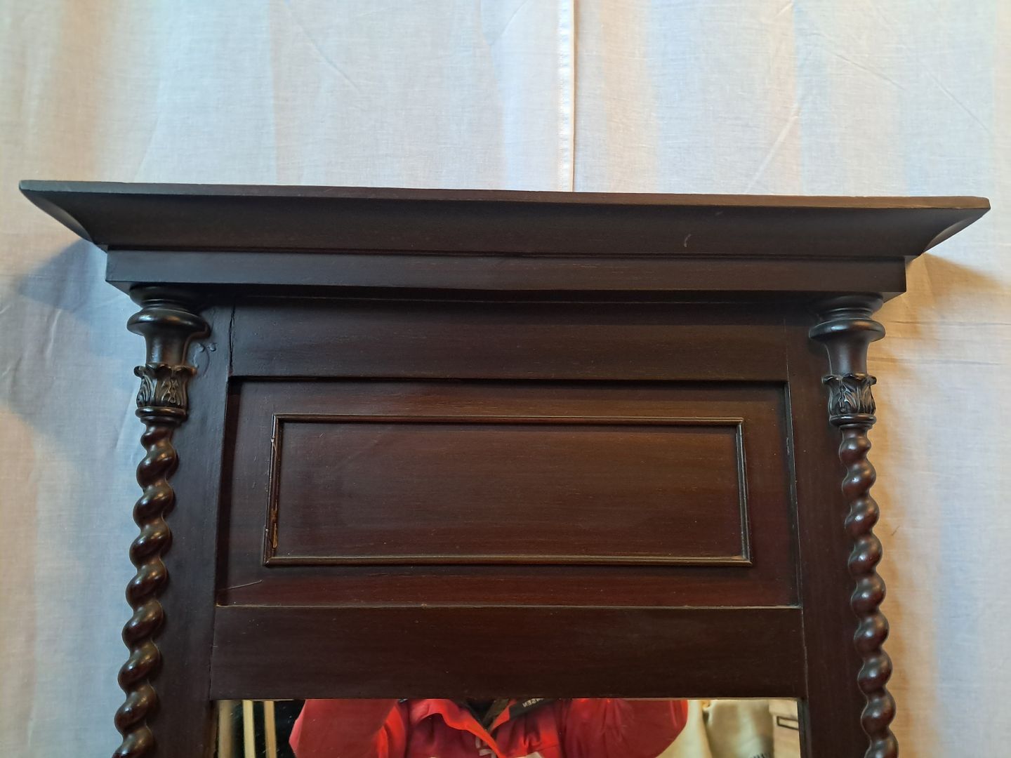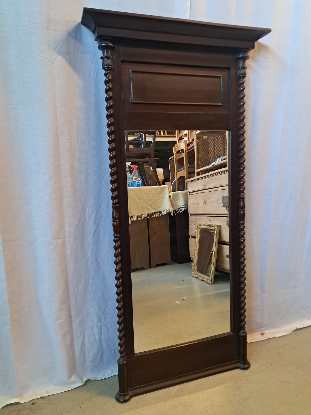 Spejl i fineret mahogni, fra 1900erne.