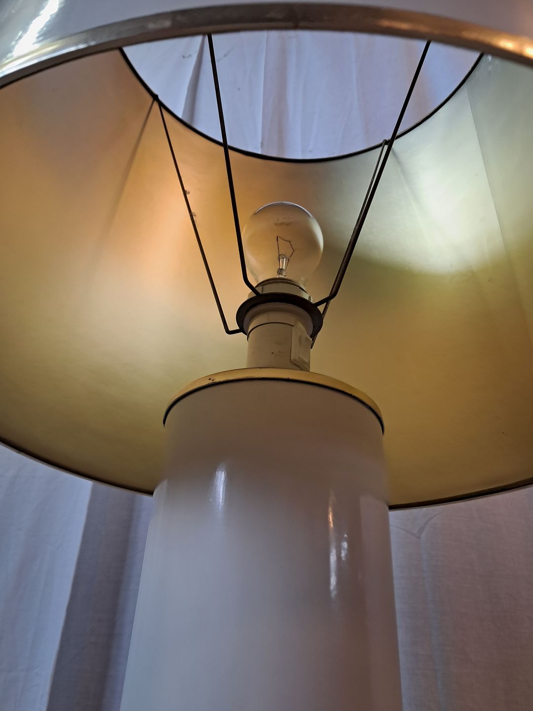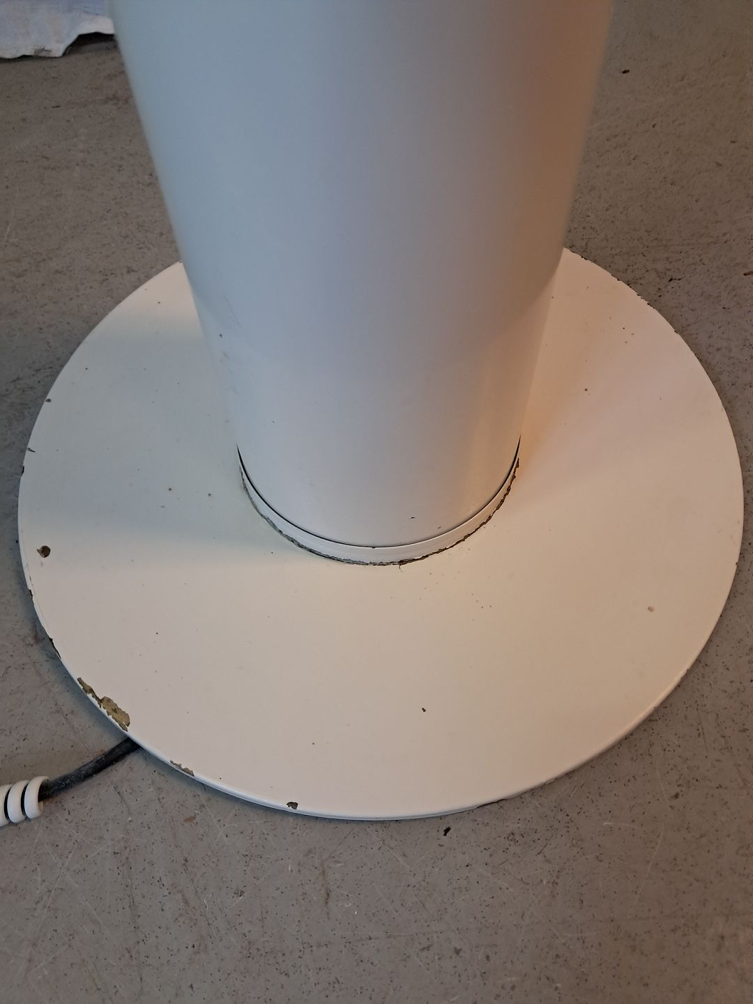 Standerlampe i metal og plast, fra 1980erne. Den har brugsspor. Højde 157cm Diameter på fod 33cm Diameter på skærm 45cm Emne nummer: 77512