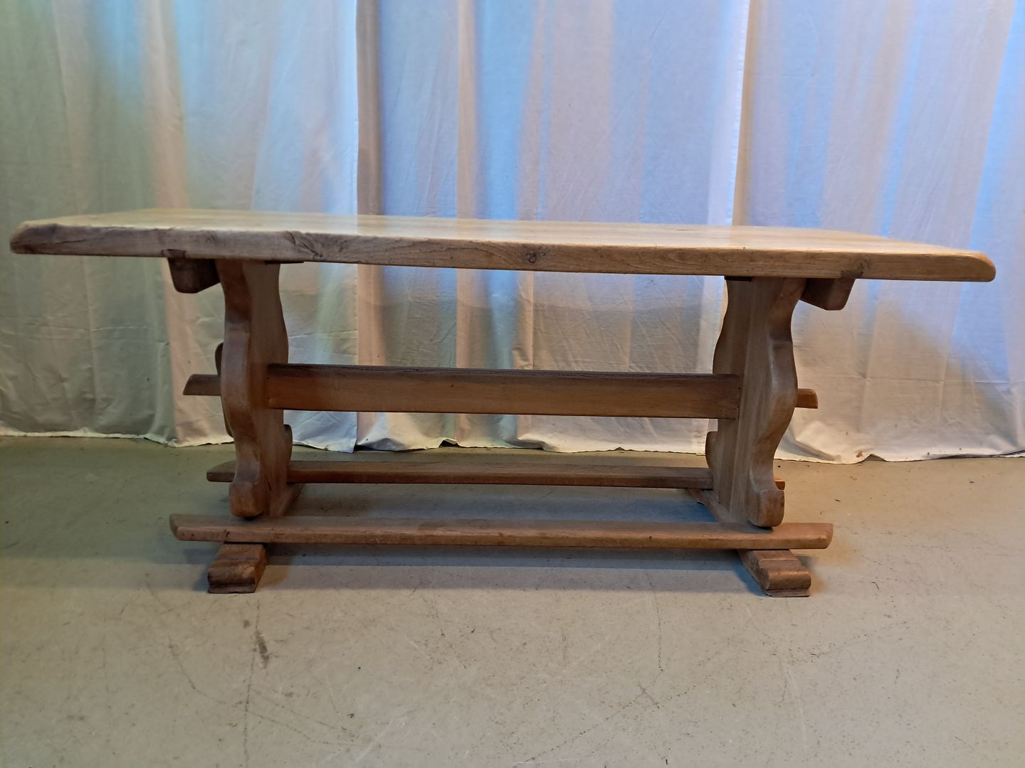 Sofabord i massivt egetræ, fra 1970erne. Det har brugsspor. Højde 59cm Bredde 53cm Længde 145cm Emne nummer: 77519