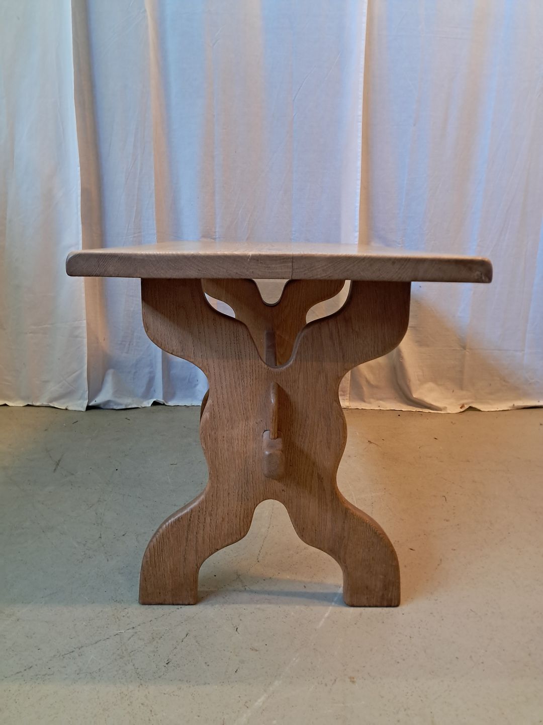 Sofabord i massivt egetræ, fra 1980erne. Det har brugsspor. Højde 56cm Bredde 55cm Længde 105cm Emne nummer: 77520