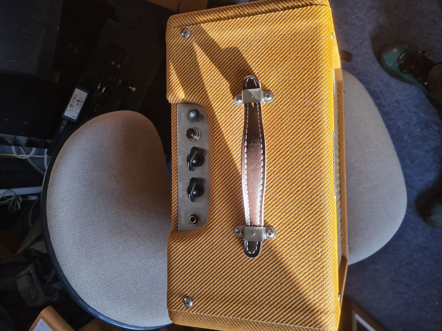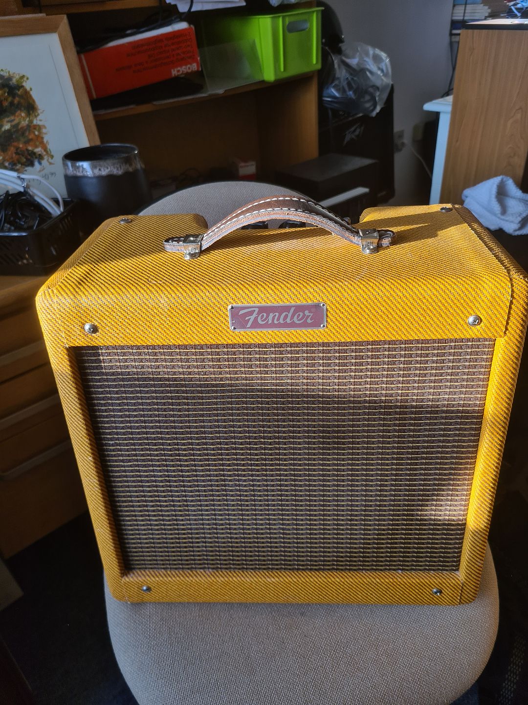 Fender Pro-Junior IV Ltd guitarforstærker type PR 257. Beklædt med gul kanvas. Testet og virker som den skal. Manual medfølger. Højde 36 cm. Bredde 39 cm. Dybde 20 cm. Emne nummer: 60681