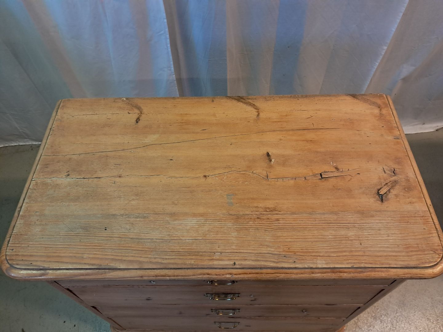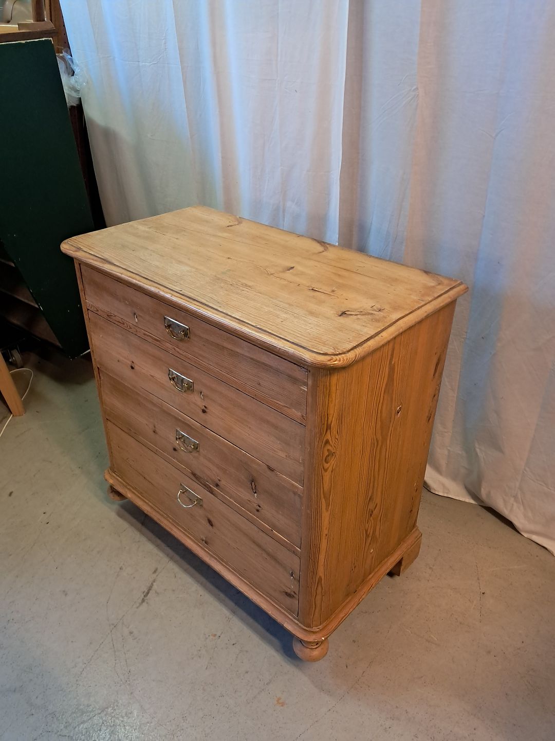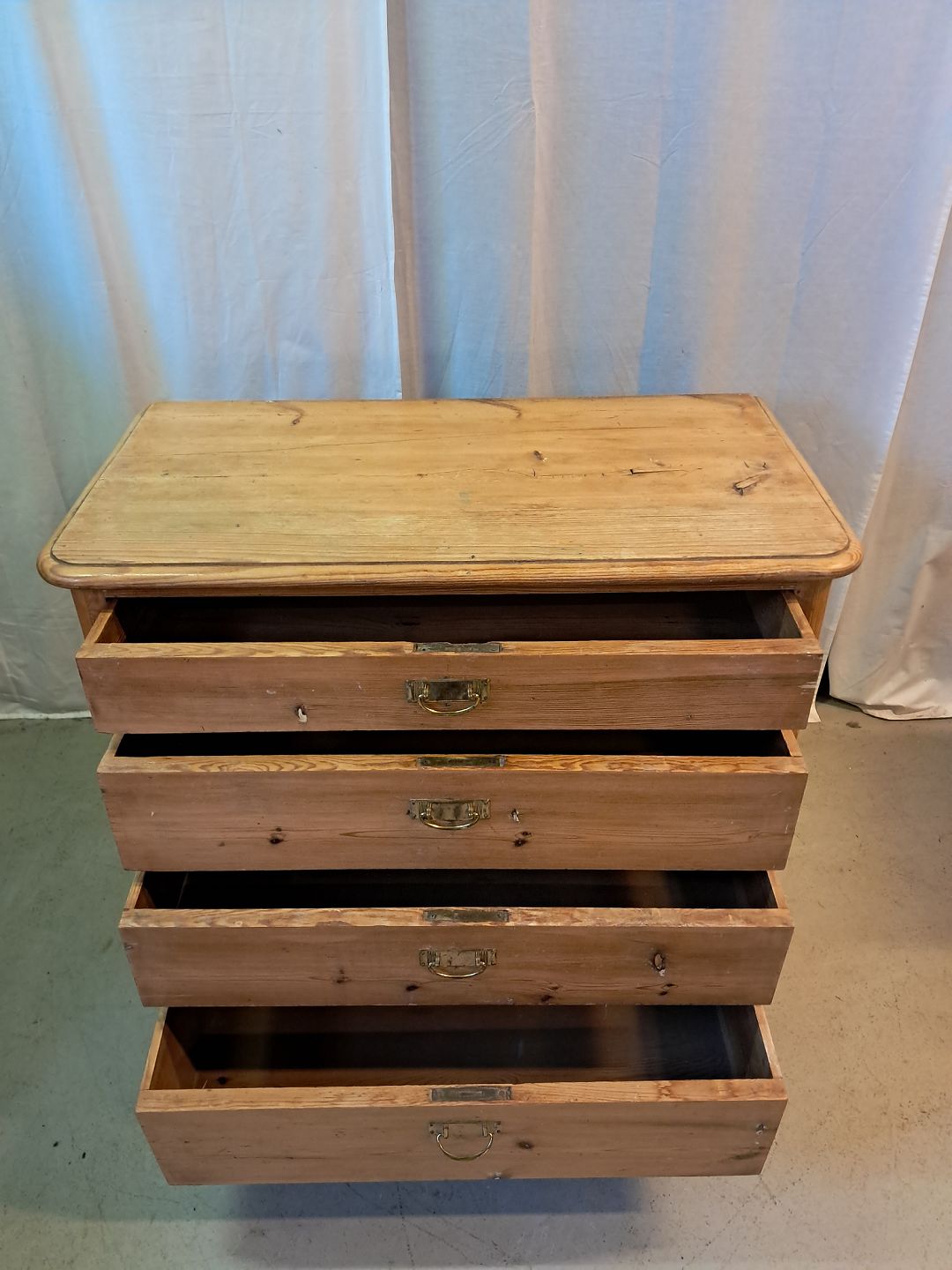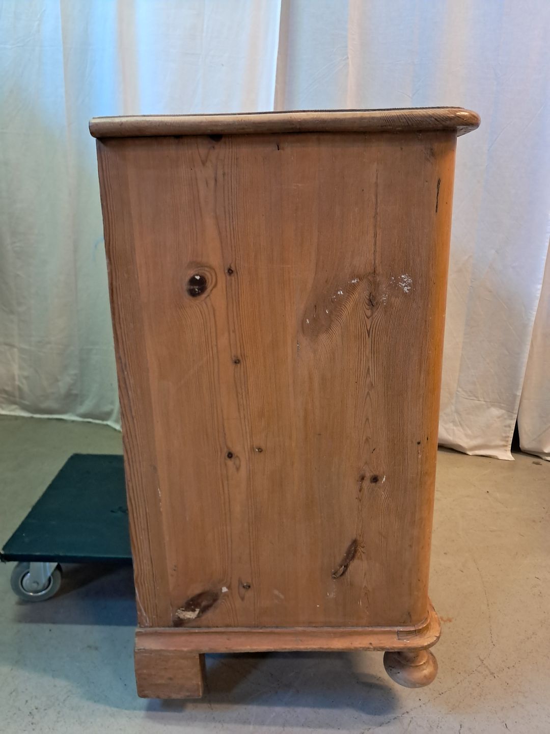 Kommode i massivt fyrretræ, fra 1910erne. Den har brugsspor og der medfølger ikke nøgle. Højde 87cm Bredde 91cm Dybde 49cm Emne nummer: 77531