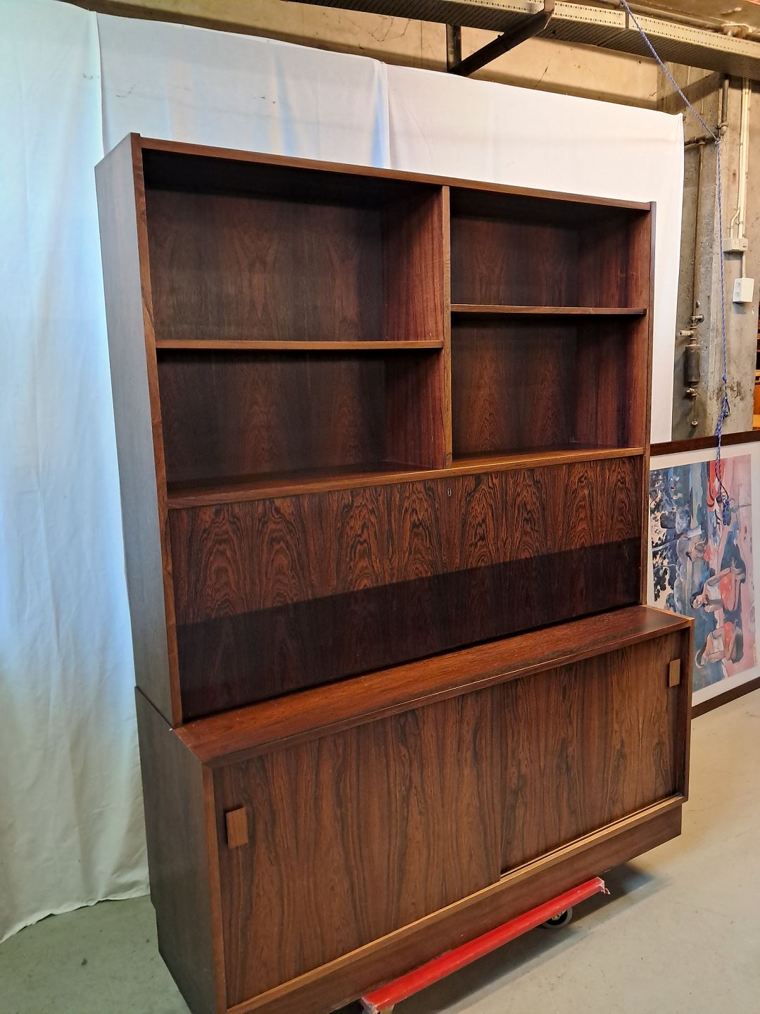Reolsektion i fineret palisander, fra 1960erne. Den har brugsspor. Højde 181cm Bredde 144cm Dybde 45cm Emne nummer: 77534