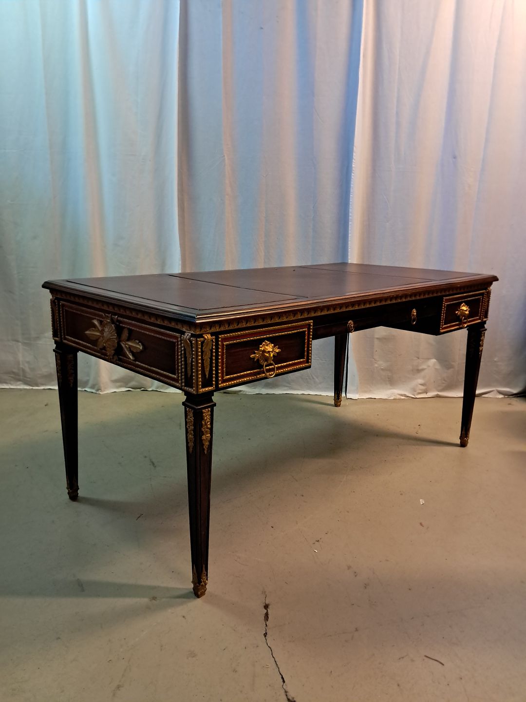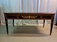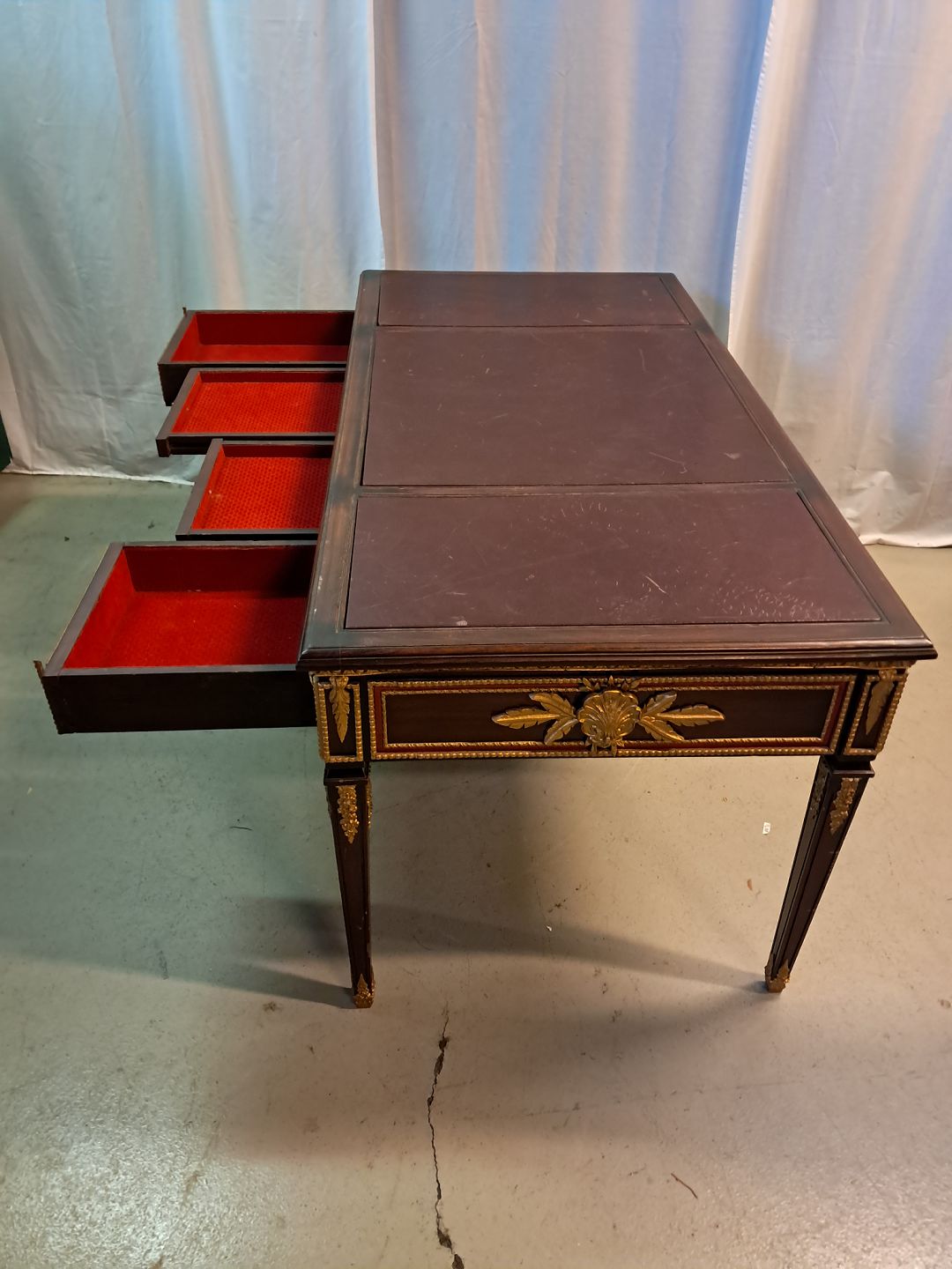 Skrivebord i fineret mahogni, fra 1990erne. Det har brugsspor. Højde 73cm Bredde 153cm Dybde 76cm Højde fra gulv til underkant 62cm Emne nummer: 77538