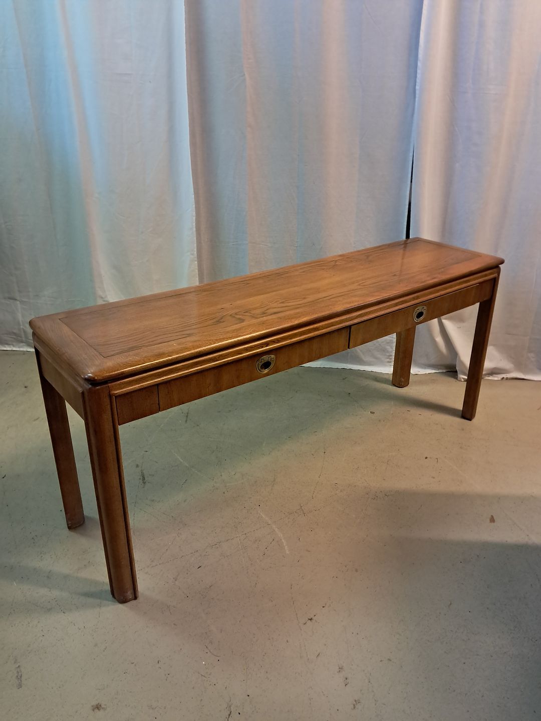 Amerikansk bord i fineret egetræ, fra 1990erne. Det har brugsspor. Højde 66cm Bredde 155cm Dybde 41cm Emne nummer: 77563