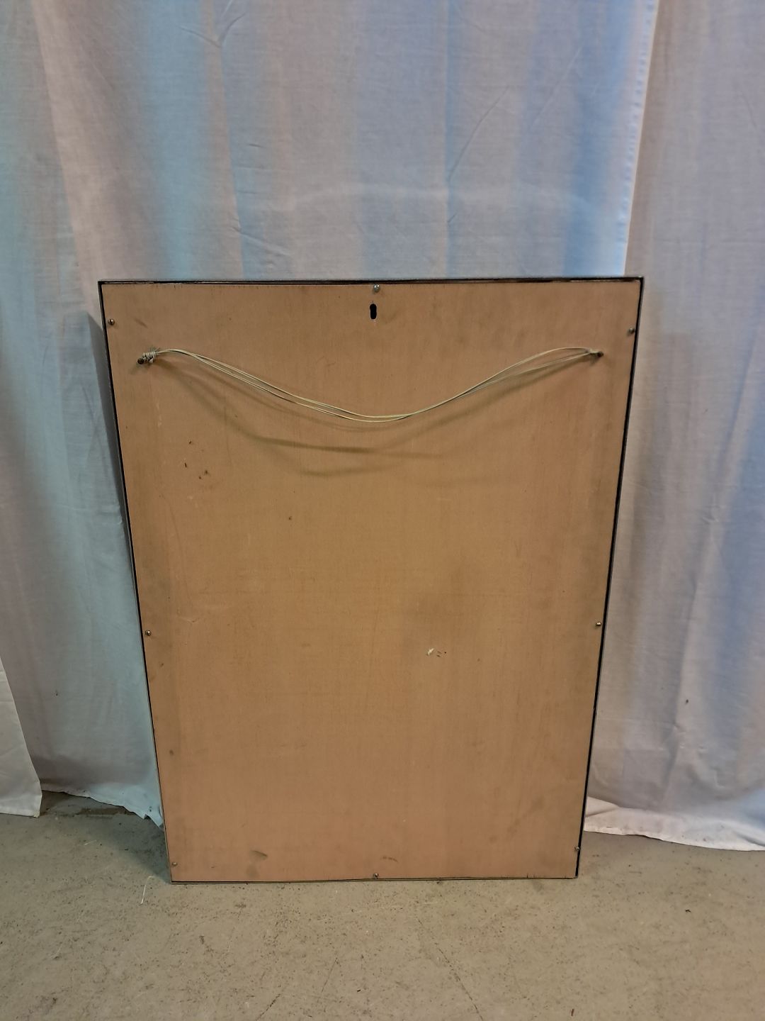 Spejl i metal og skind, fra 1990erne. Det har brugsspor. Højde 90cm Bredde 63cm Dybde 11cm Emne nummer: 77576