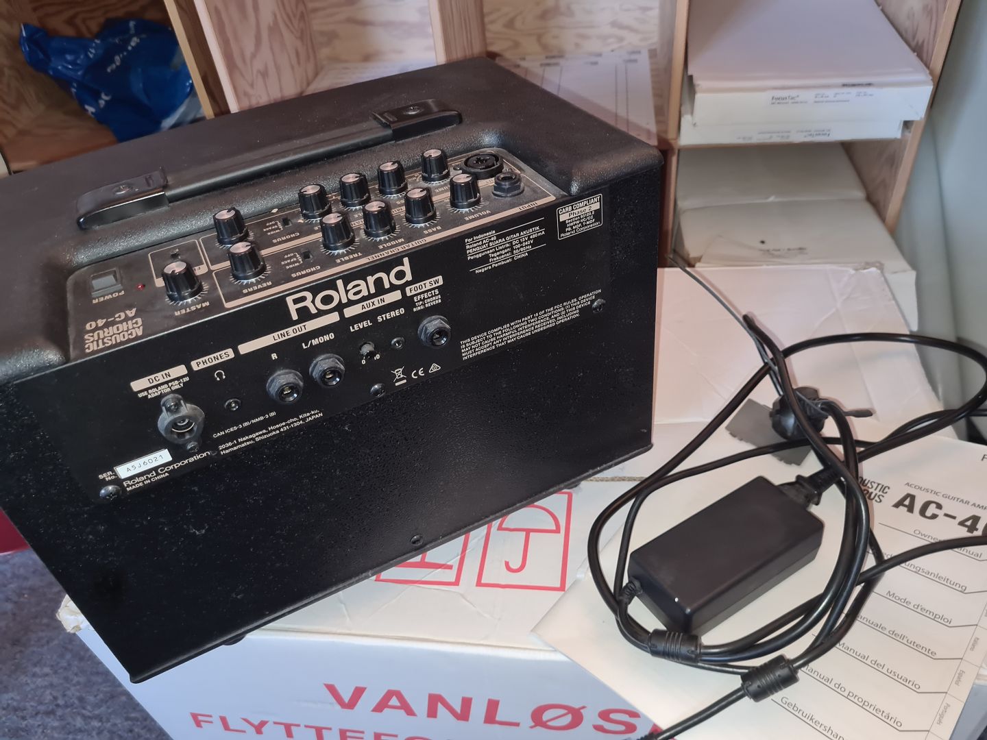 Roland Acoustic Chords Guitarforstærker model AC-40. Testet og virker. Ingen synlige brugsspor. Manual og strømforsyning medfølger. Højde 25 cm. Bredde 36 cm. Dybde 24 cm. Emne nummer: 60683