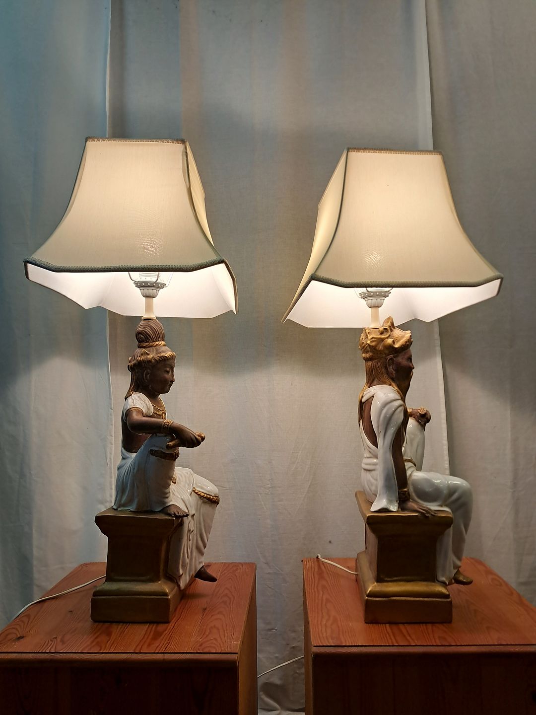 2 Bordlamper i pocelæn med skærme, fra 2000erne. Højde 83cm Skærmbredde 44cm Skærmdybde 33cm Emne nummer: 77604