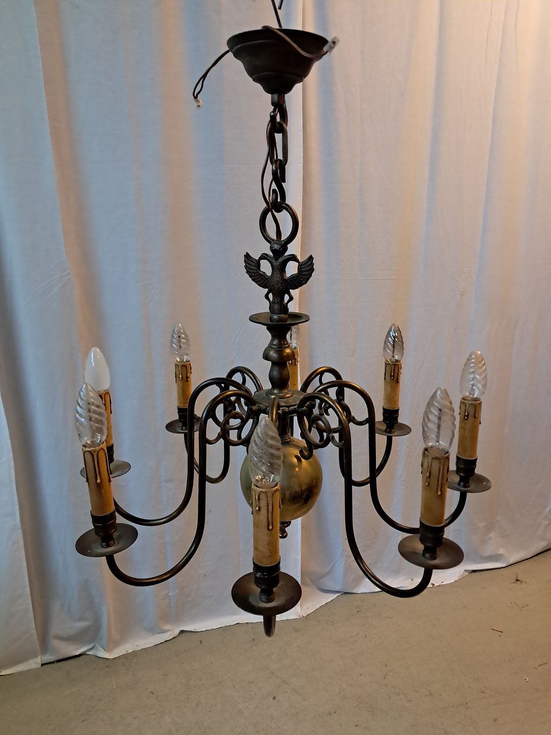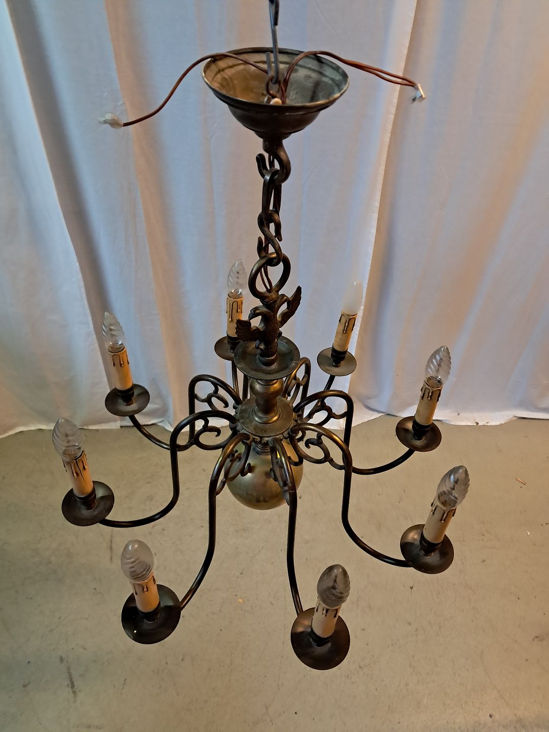 8-armet kirkekrone i bruneret messing, fra 1930erne.
