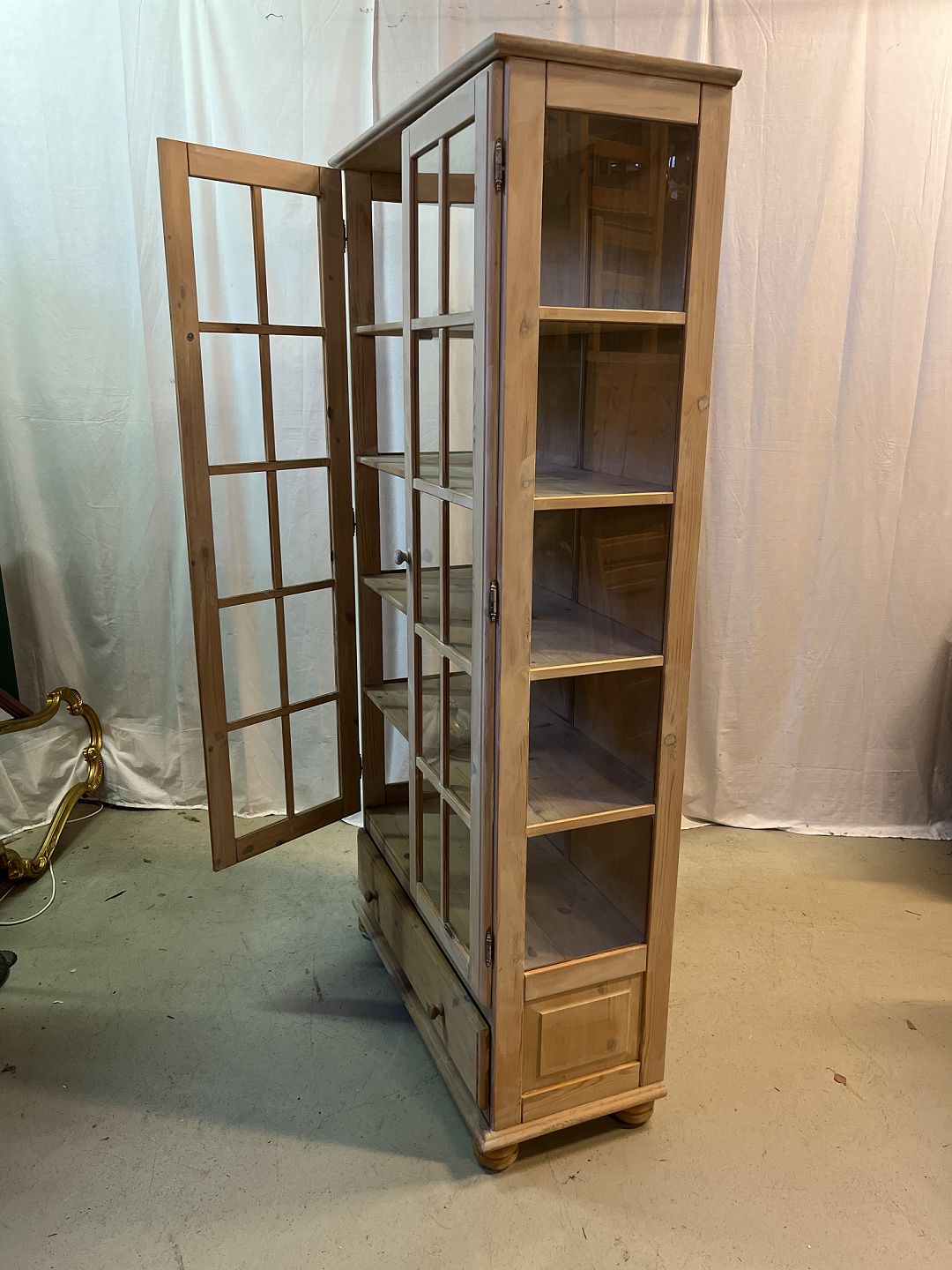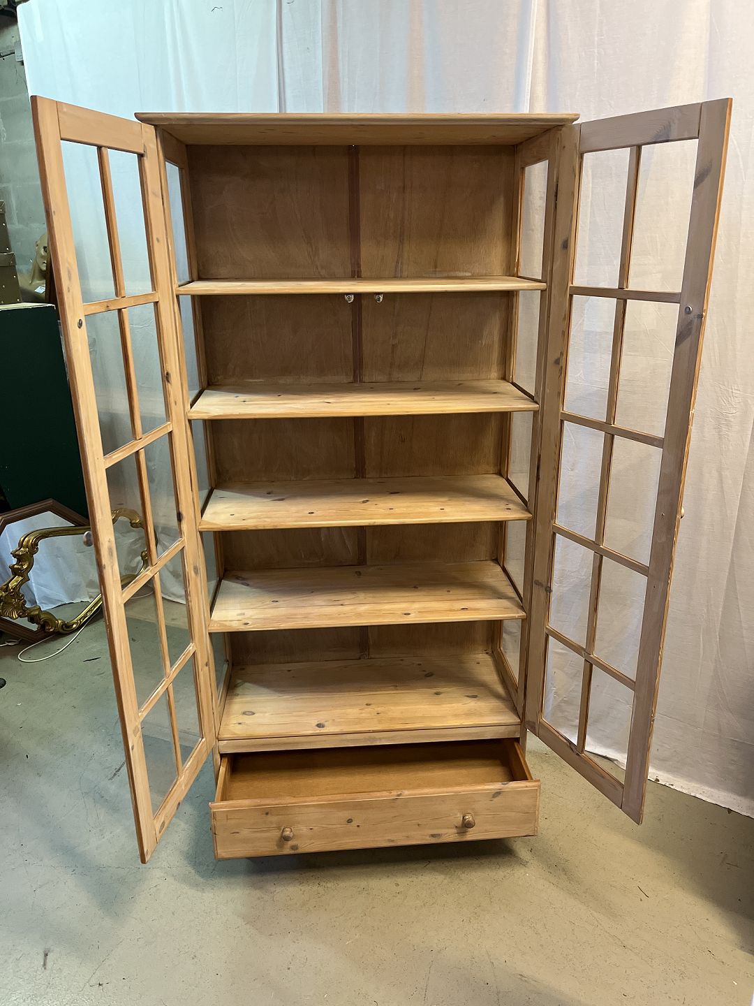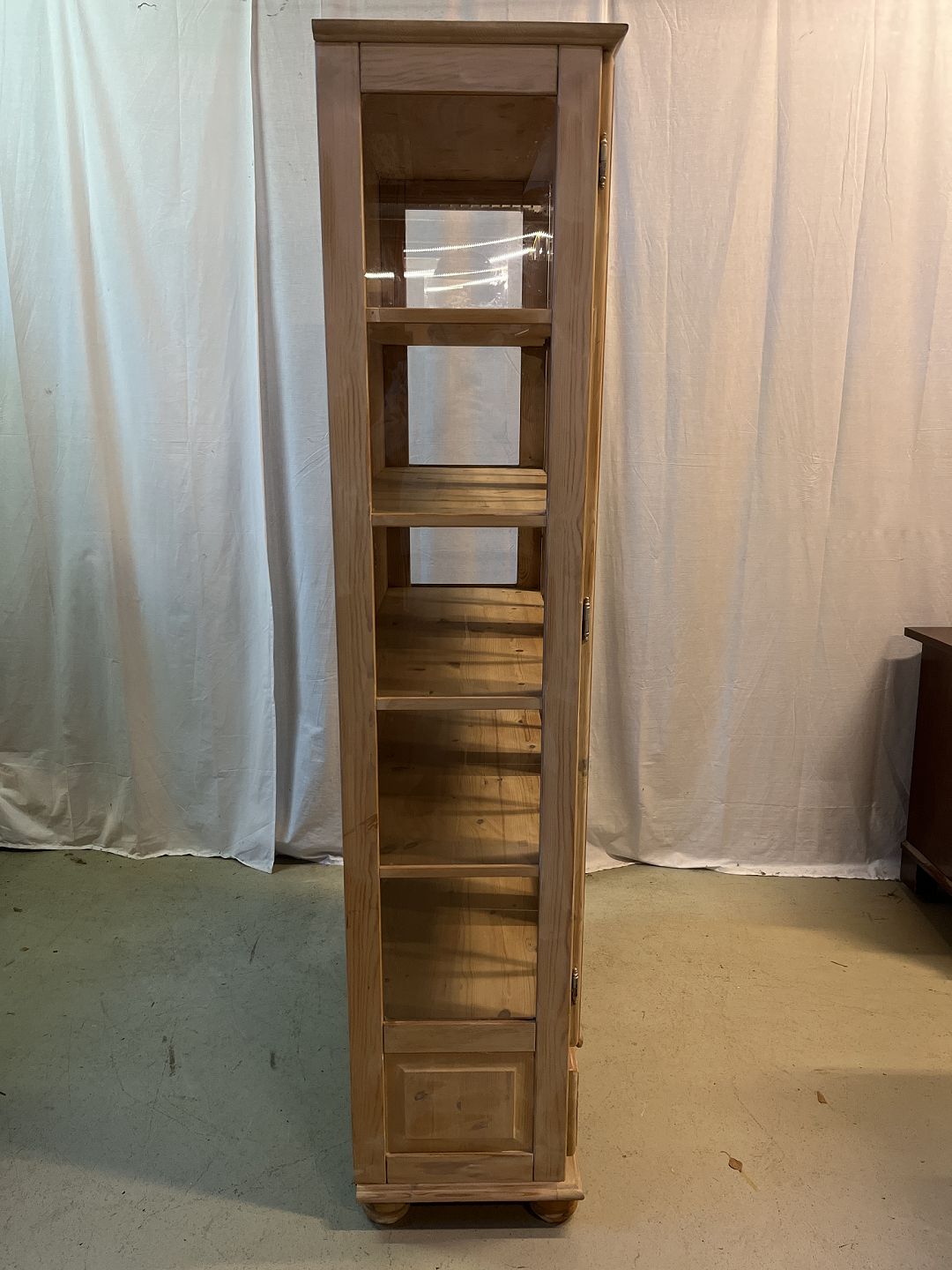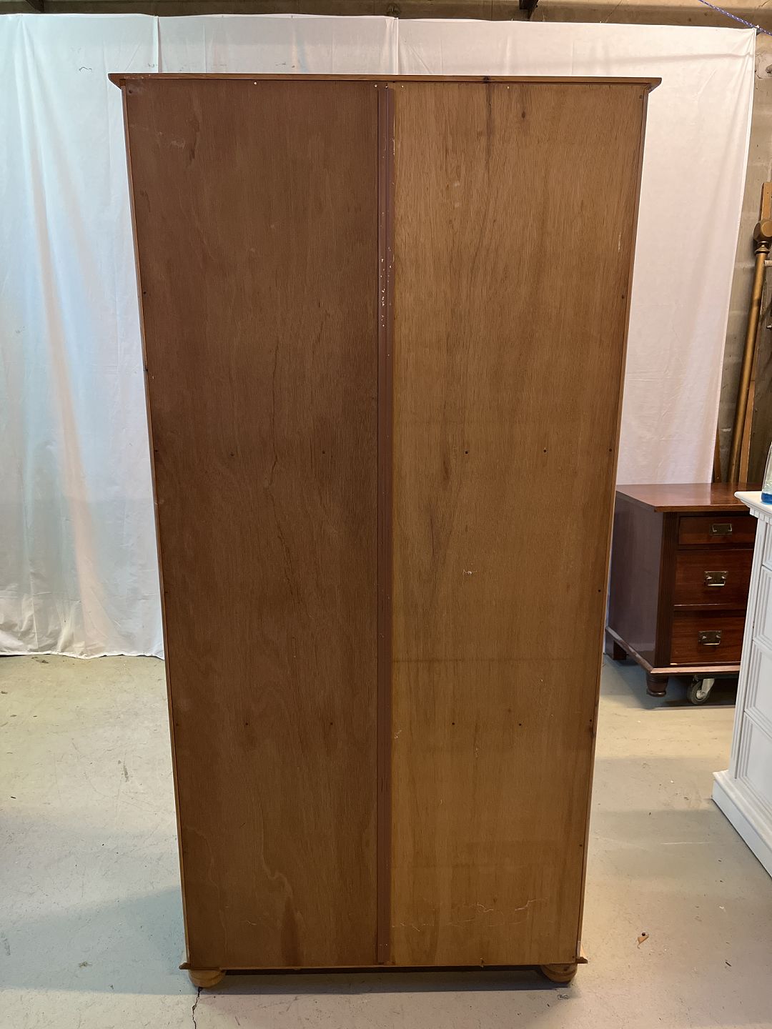 Skab i massivt fyrretræ, fra 1990erne. Det har brugsspor. Højde 181cm Bredde 84cm Dybde 38cm Emne nummer: 77622