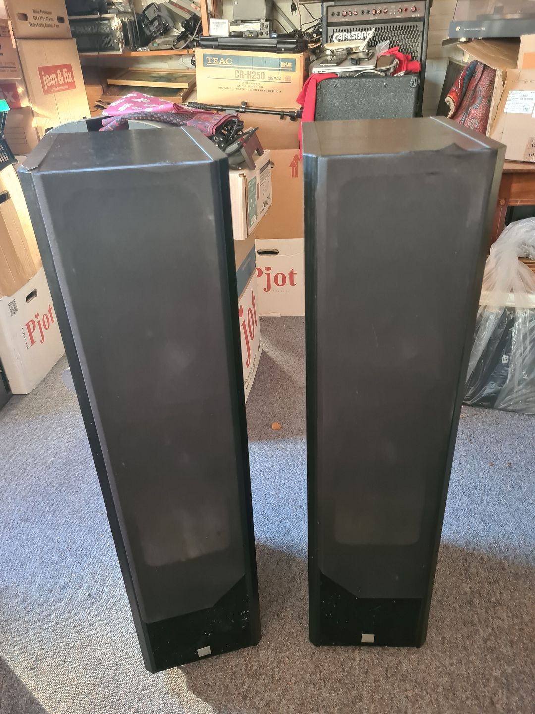 Højtalerpar fra DALI model 400. Testet og lyder fint. Fremstår dog med lidt skrammer på kabinetterne. (Billede) Højde 100 cm. Bredde 24 cm. Dybde 34 cm. Emne nummer: 60686