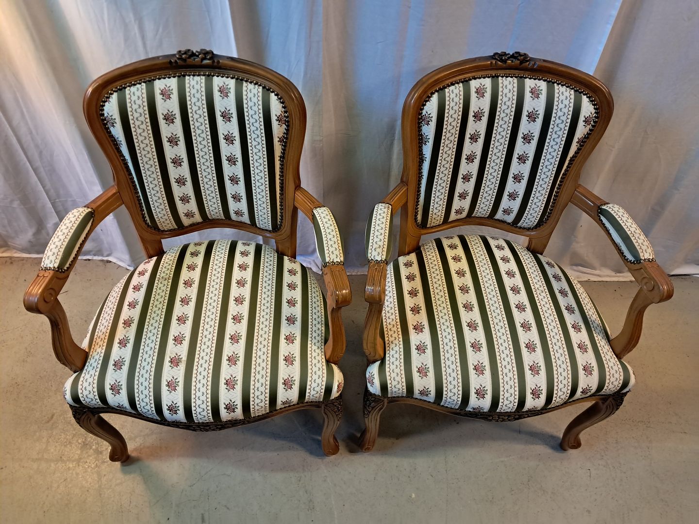 2 Rokokostole i massivt bøgetræ, fra 1980erne. De har brugsspor. Ryghøjde 90cm Sædehøjde 44cm Emne nummer: 77665