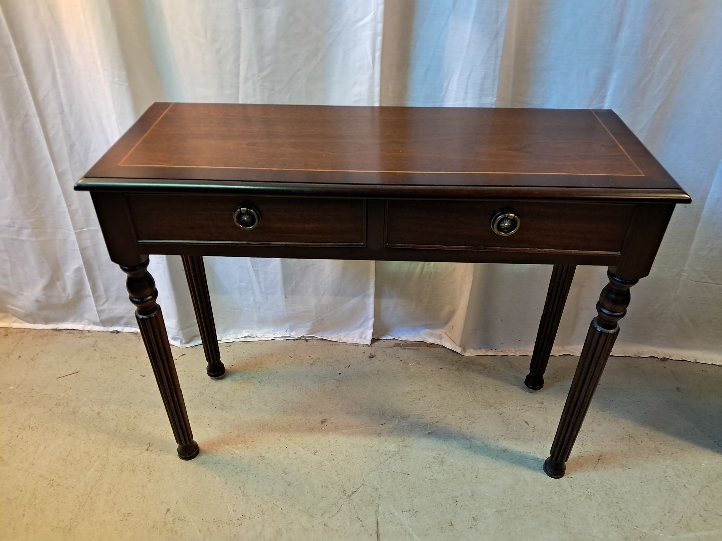 Konsol i fineret mahogni, fra 1990erne. Det har brugsspor. Højde 60cm Bredde 77cm Dybde 28cm Emne nummer: 77667