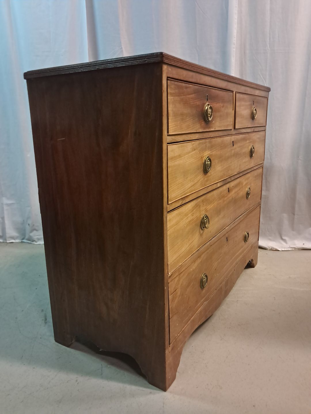 Kommode i fineret mahogni, fra 1920erne. Den har defekte lister, finer og brugsspor. Højde 96cm Bredde 197cm Dybde 50cm Emne nummer: 77672