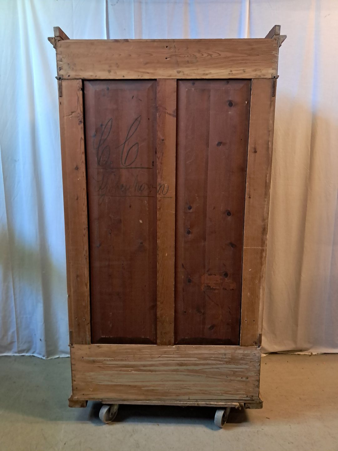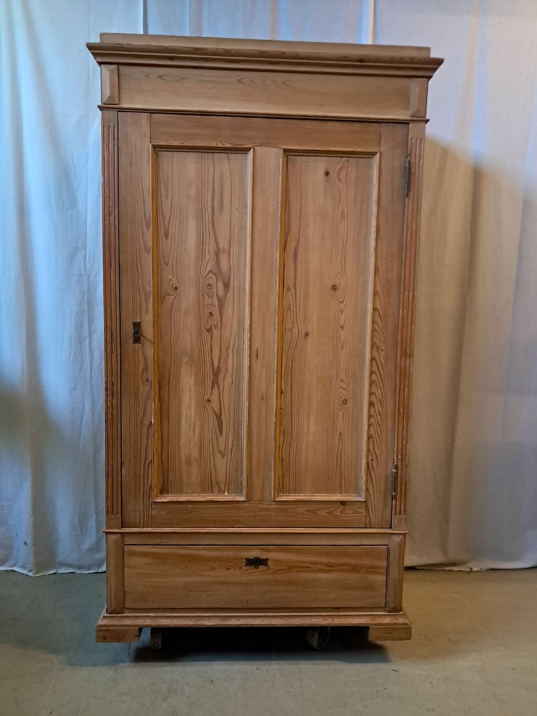 Karlekammerskab i massivt fyrretræ, fra 1910erne. Det har brugsspor. Højde 180cm Bredde 100cm Dybde 50cm Emne nummer: 77689