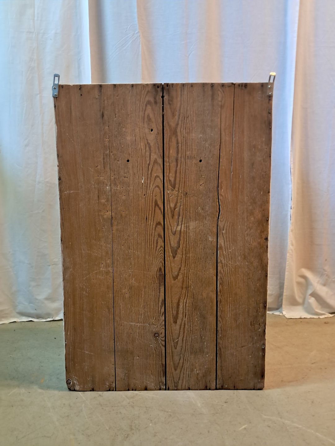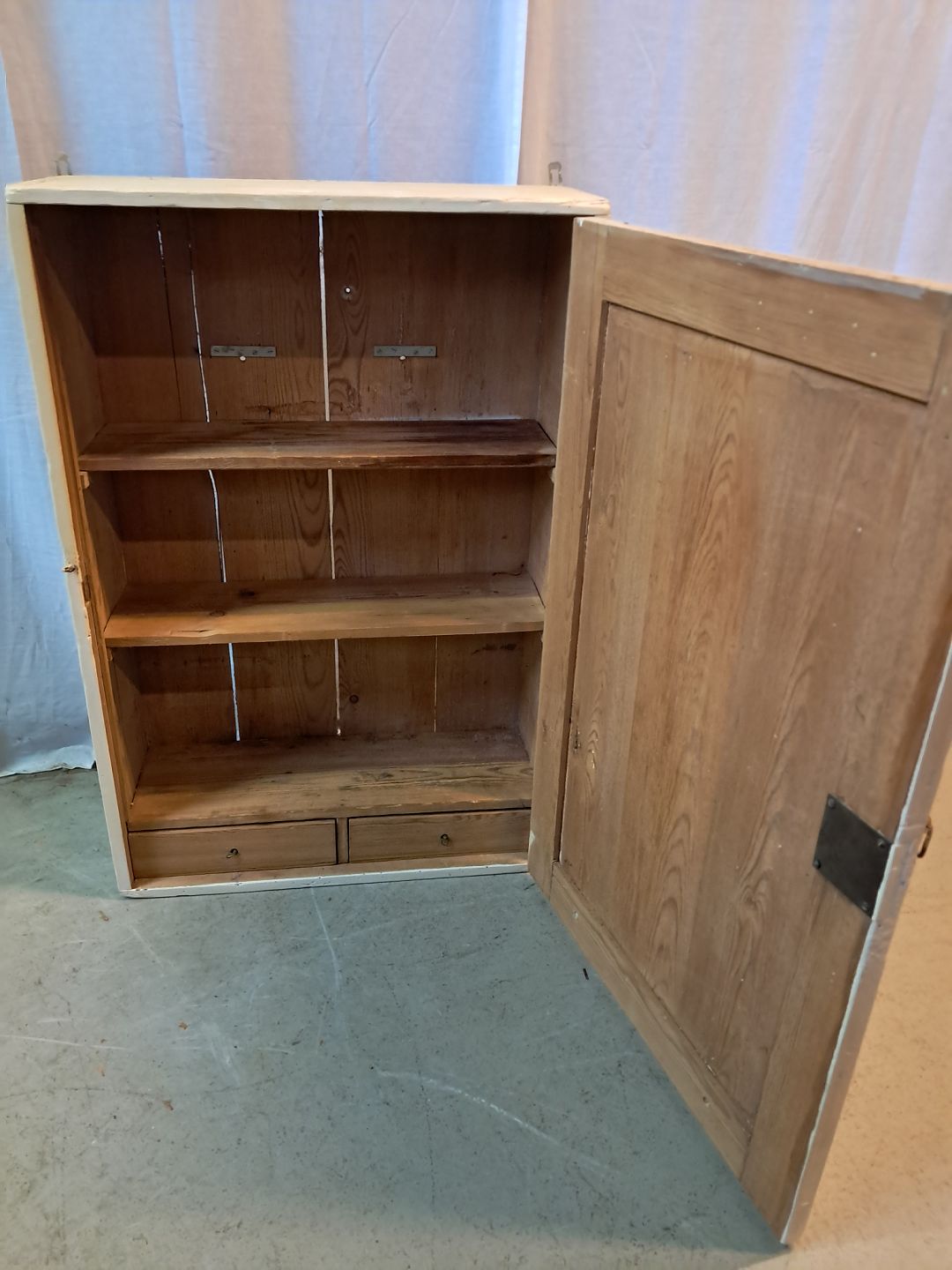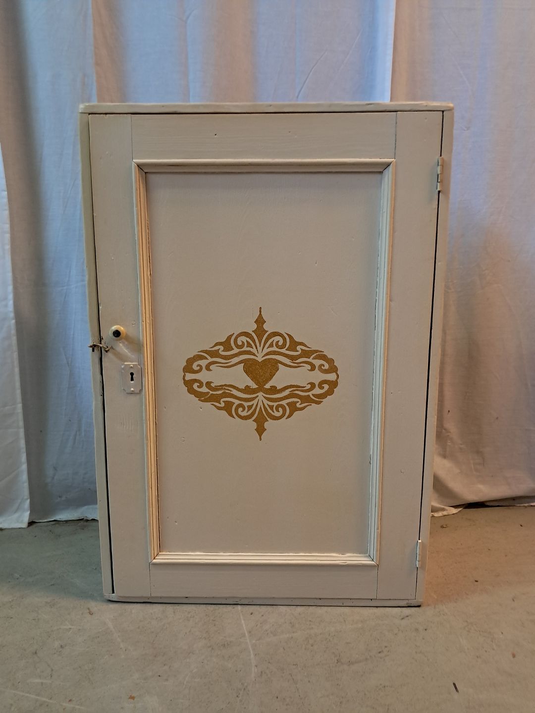 Malet vægskab i massivt fyrretræ,fra 1920erne. Det har brugsspor og der medfølger ikke nøgle. Højde 89cm Bredde 60cm Dybde 22cm Emne nummer: 77692