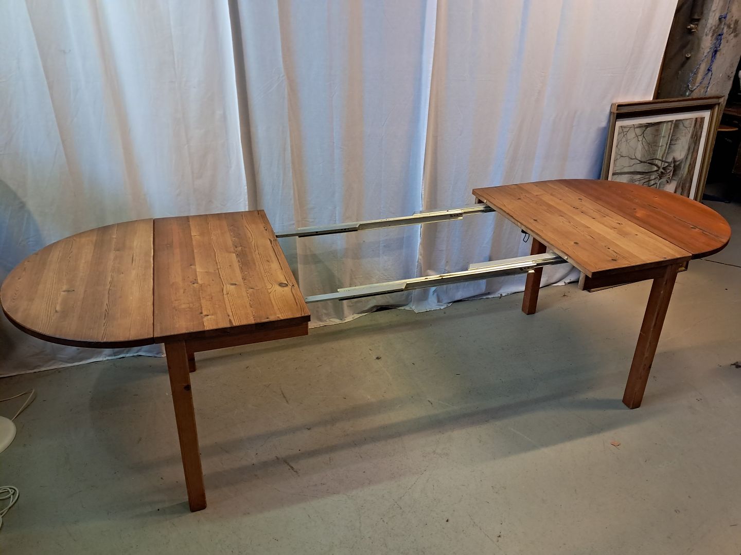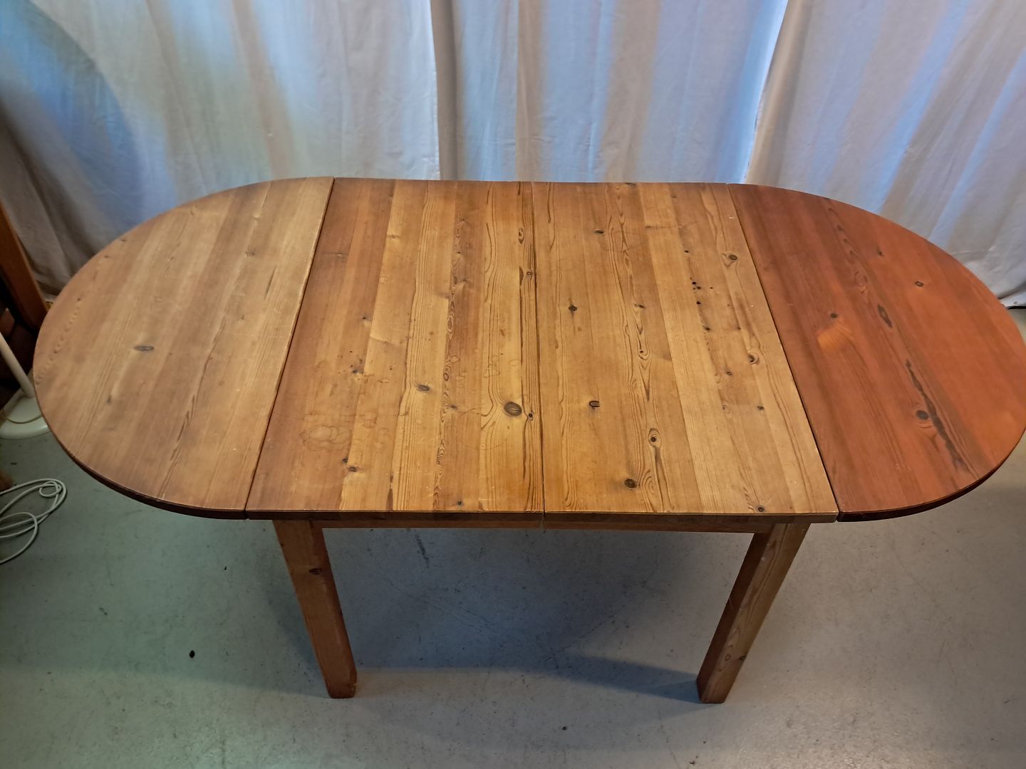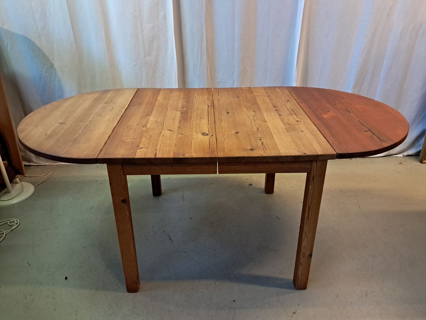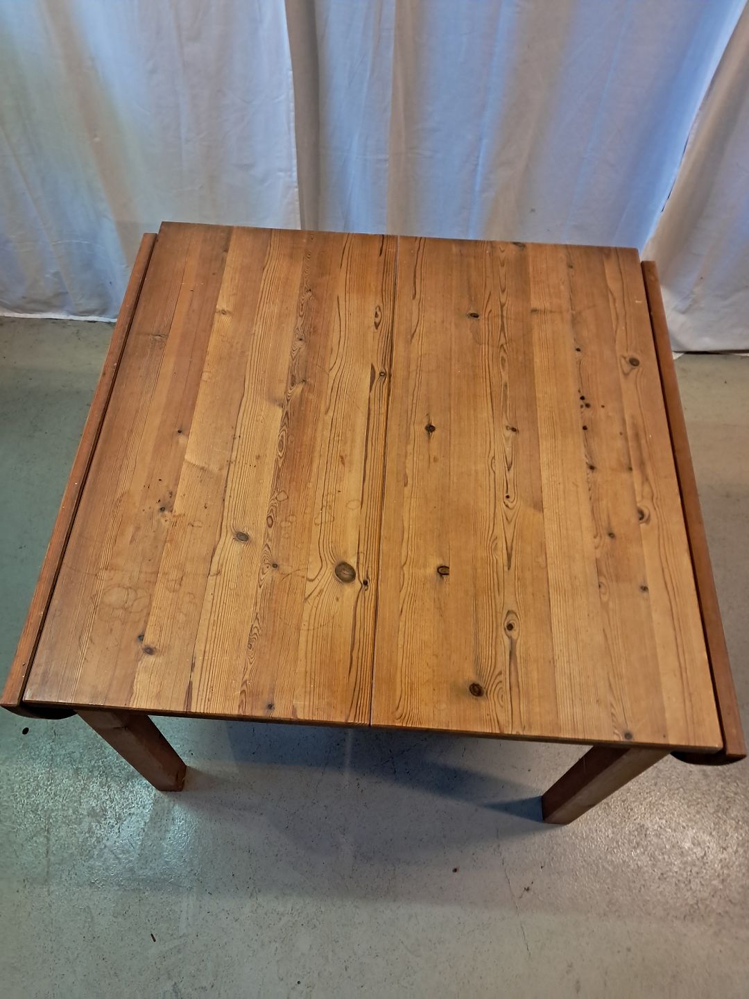 Spisebord i massivt fyrretræ med klapper og 2 tillægsplader, fra 1980erne.