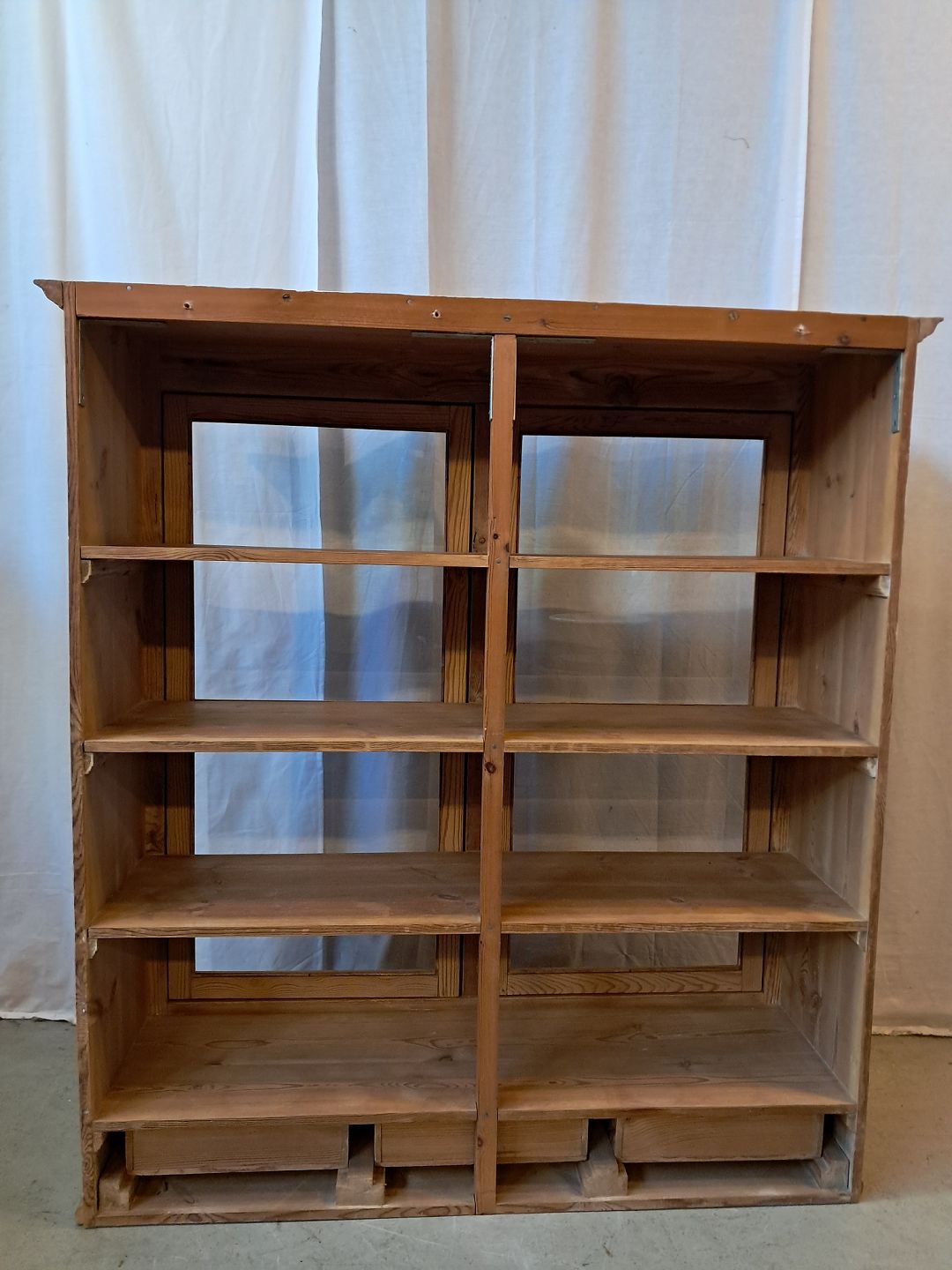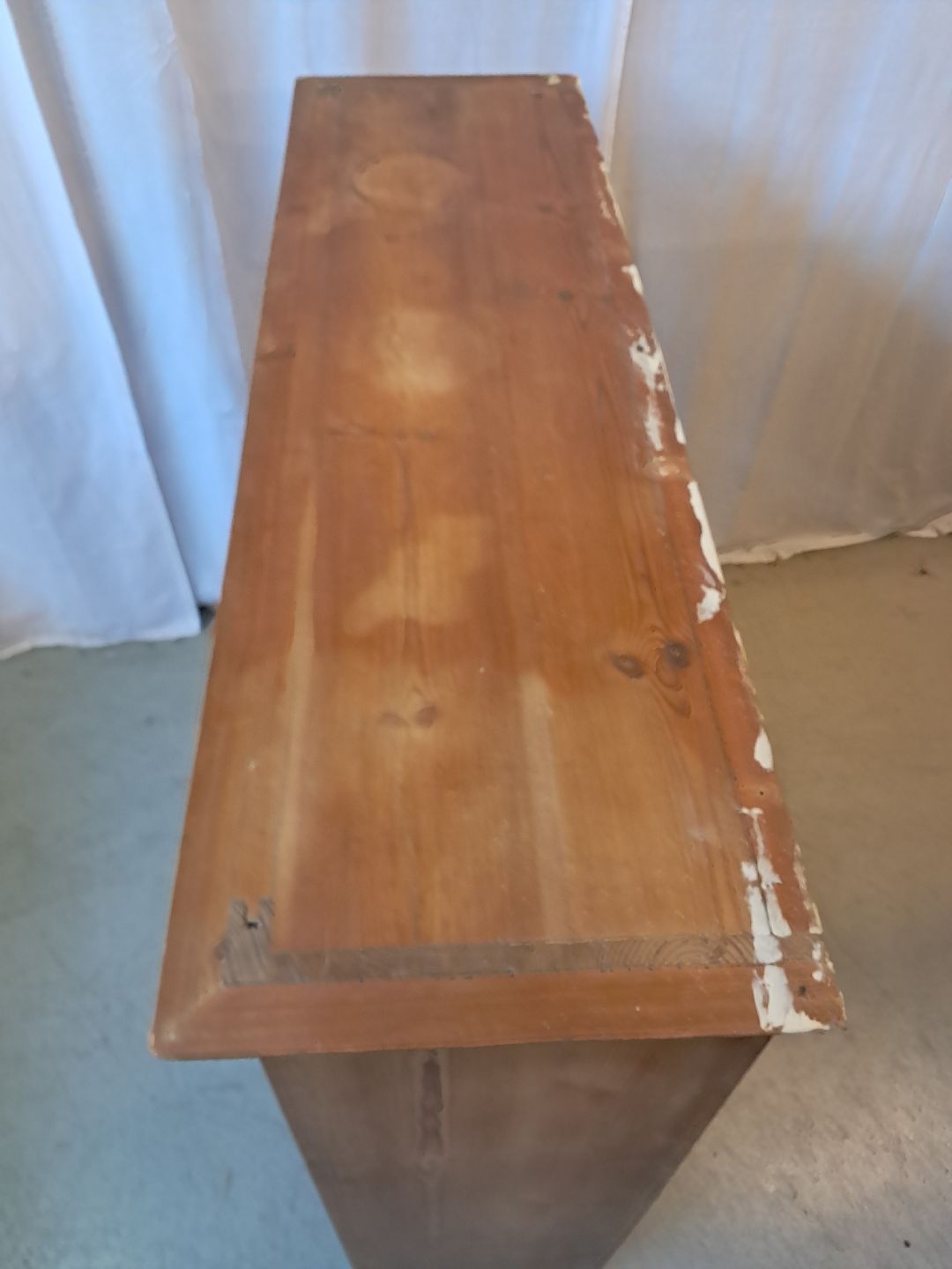Gammelt køkkenskab i massivt fyrretræ, fra 1910erne. Det har brugsspor. Højde 126cm Bredde 117cm Dybde 35cm Emne nummer: 77719