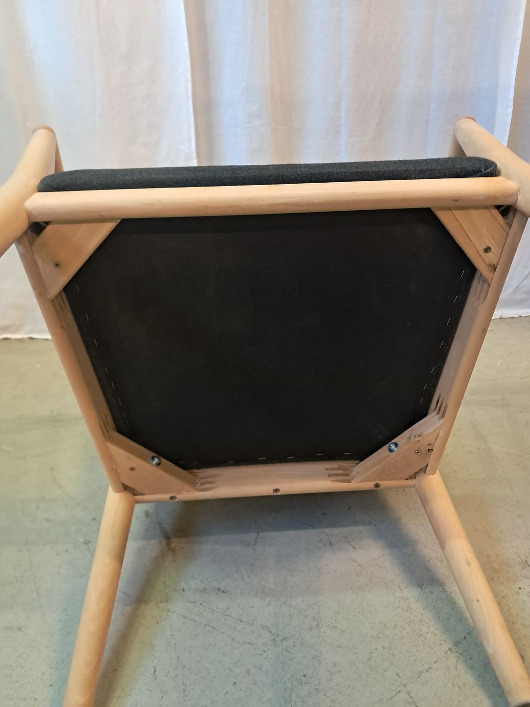 Lænestol i massivt bøgetræ, fra 2000erne. Den har brugsspor. Ryghøjde 74cm Sædehøjde 41cm Emne nummer: 77728