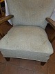 Dansk møbelsnedker overpolstret lænestol i uldstof m. stel af bejdset bøg. Fremstillet ca. 1930'erne. Brugt stand, betræk bør ombetrækkes. Mål: H. 73 cm. B. 68 cm. D. 78 cm. SH. 42 cm. Emne nummer: 81007