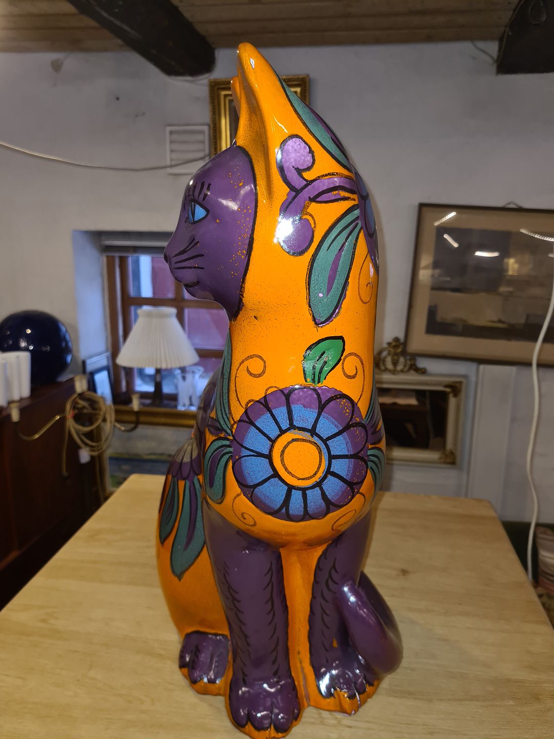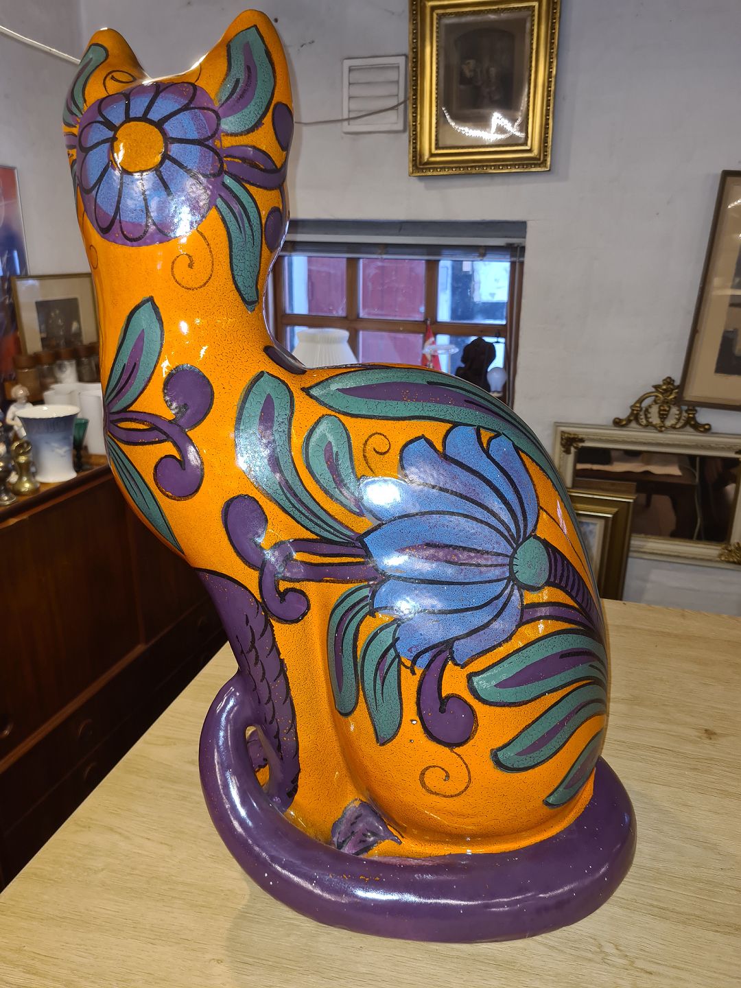 Mario Bellini figur af siddende kat. Udført i glaseret fajance i Italien ca. 1960'erne. Fremstår i pæn stand, dog med mindre chip på øret. Mål: H. 62 cm. Emne nummer: 81029