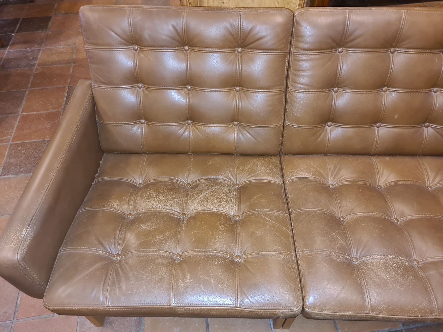 Par 3 personers sofaer i eg og læder designet af Ole Gjerlev Knudsen Moduline model. Fremstillet i 1970'erne. Fremstår står pæne og ok velholdte dog med lidt overfladiske brugsspor på den ene og mindre hul i sæde på den anden. (Billeder)