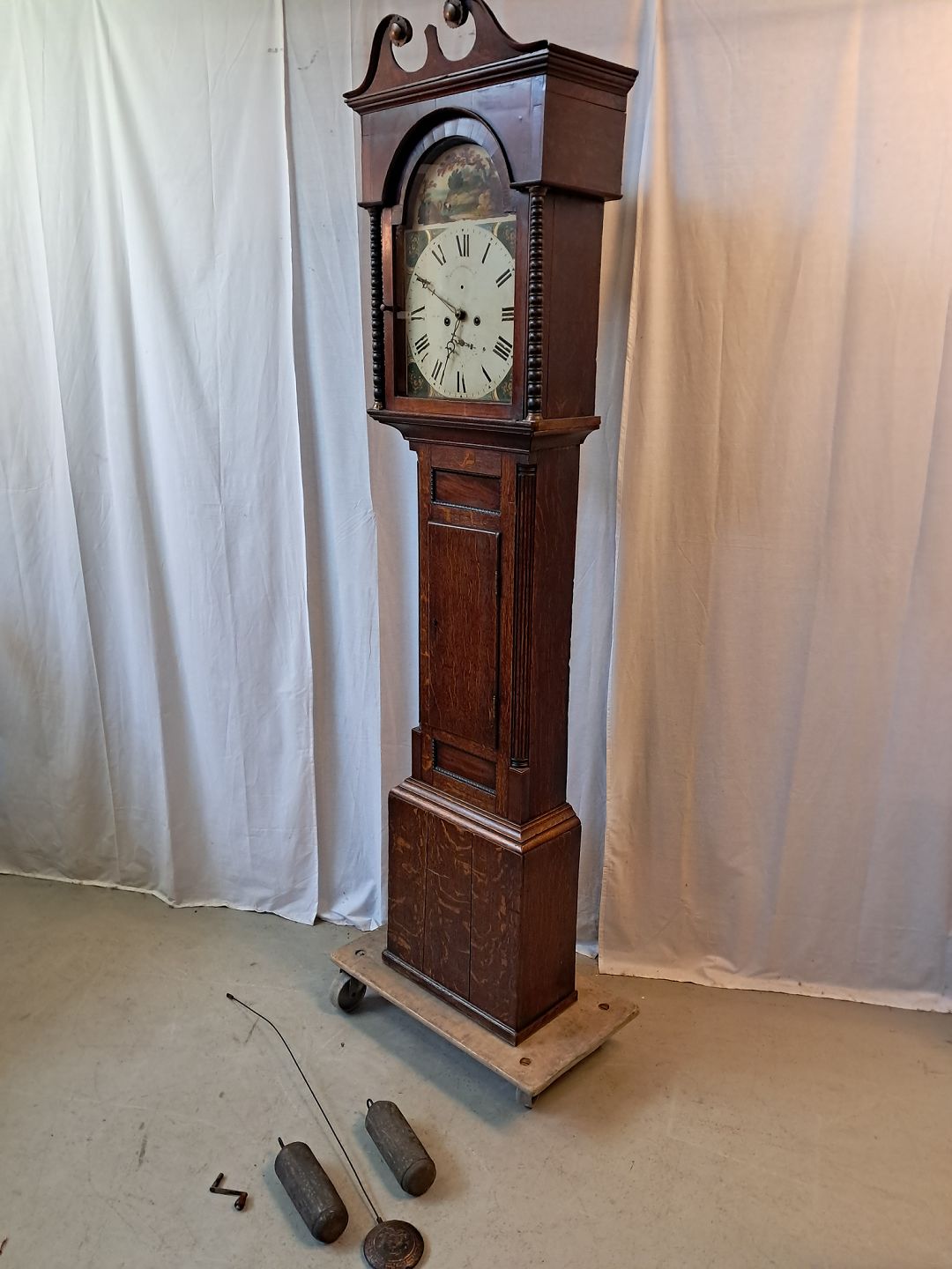 Standur i massivt egetræ, fra 1880erne. Det har brugsspor og trænger til service. Højde 205cm Bredde 48cm Dybde 32cm Emne nummer: 77771
