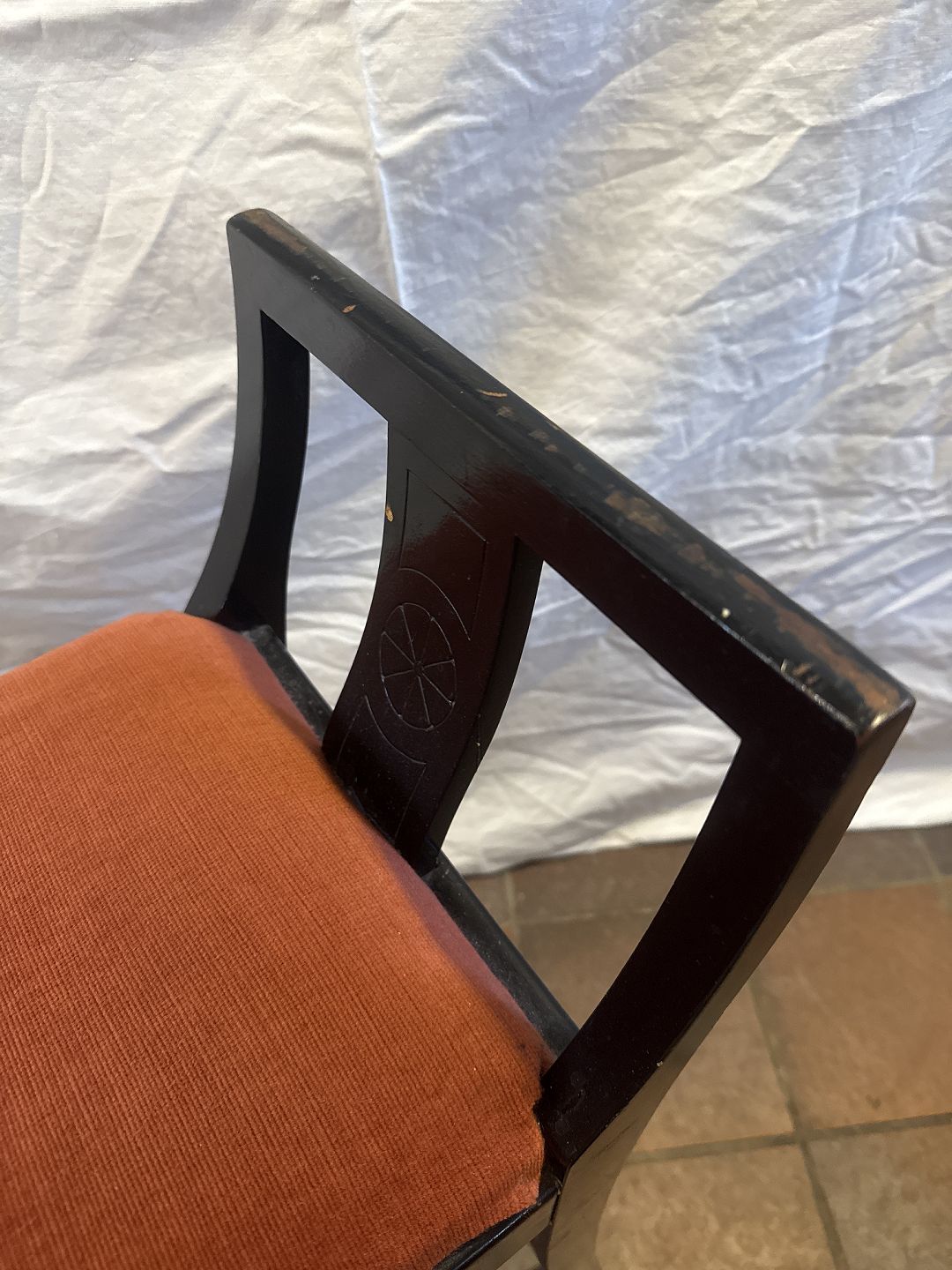 Klaverbænk i sortlakeret træ betrukket m. rødt velour stof. Udført ca. 1930'erne. Brugt stand, fremstår med lak afslag. Mål: H. 65 cm. B. 72 cm. D. 29 cm. SH. 51 cm. Emne nummer: 81068