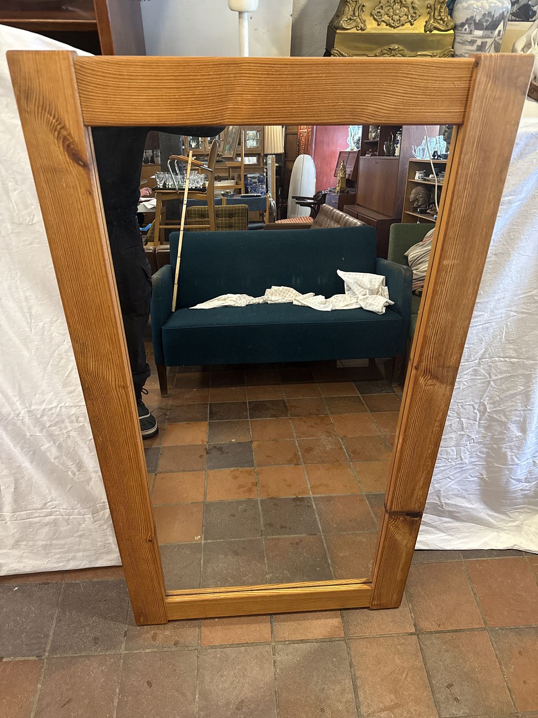 Svensk design spejl m. ramme i massiv fyr. Fremstillet ca. 1970'erne. Pæn brugt stand. Mål: H. 136 cm. B. 75 cm. D. 4 cm. Emne nummer: 81070