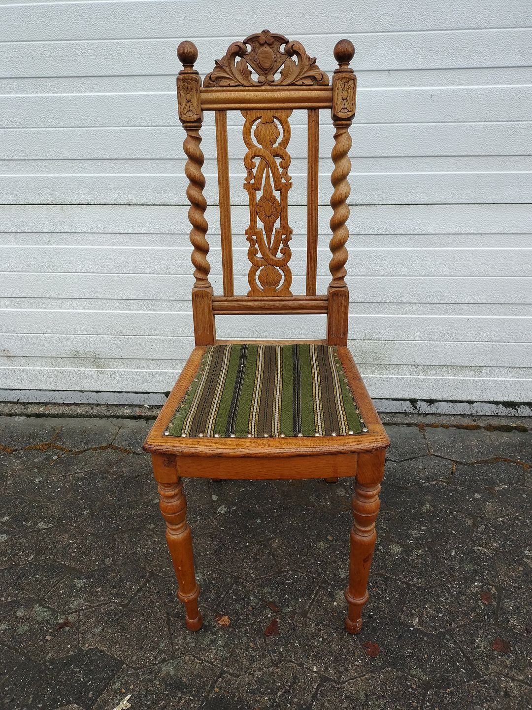 Stol i massivt egetræ, fra 1920erne. Den har brugsspor. Ryghøjde 108cm Sædehøjde 47cm Emne nummer: 77843