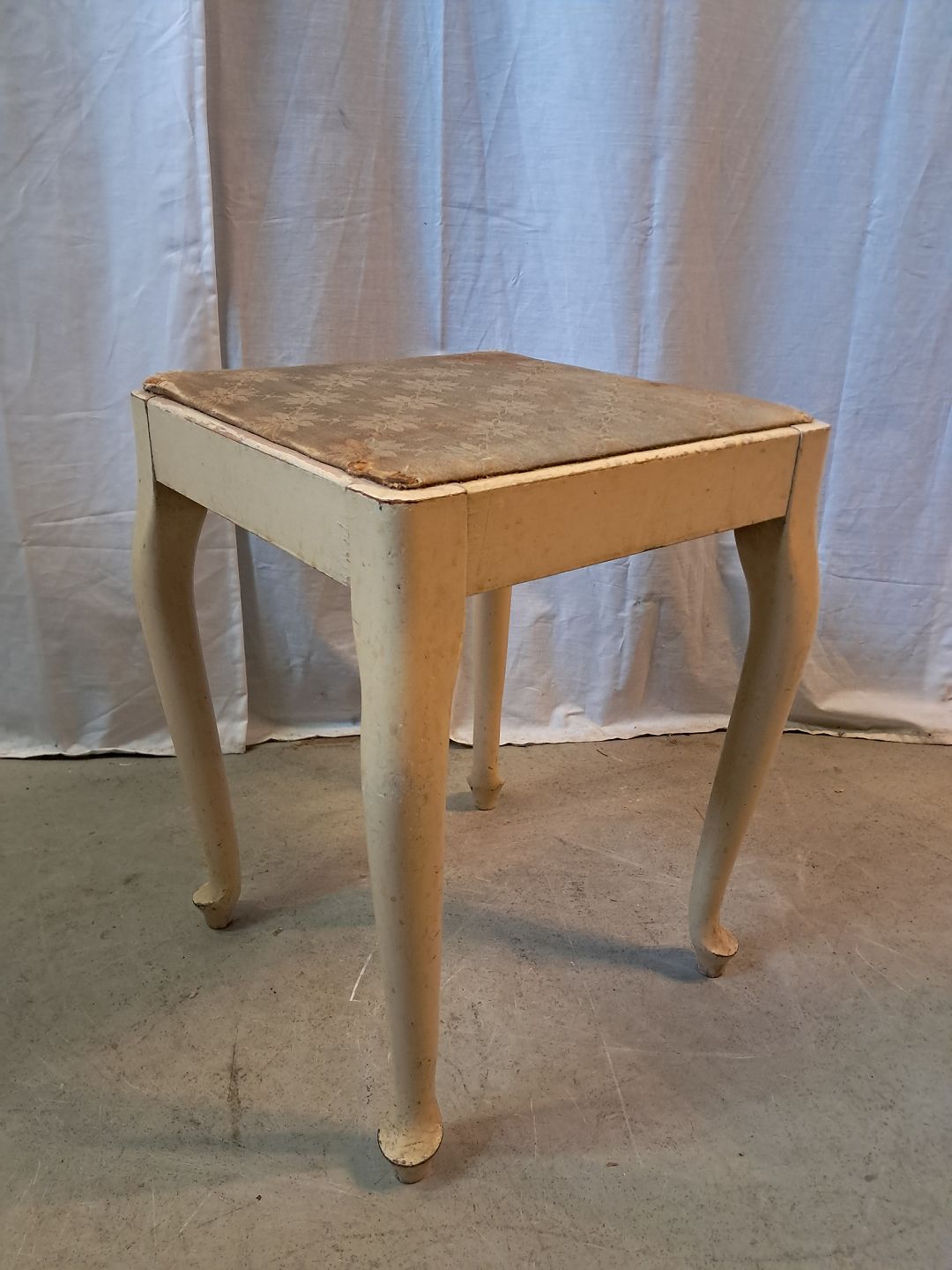 Malet skammel fra 1920erne. Den har brugsspor og defekt betræk. Højde 46cm Bredde 35cm Dybde 35cm Emne nummer: 77851