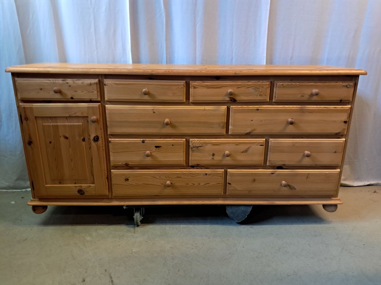 Disk i massivt fyrretræ, fra 1990erne. Den har brugsspor. Højde 83cm Bredde 182cm Dybde 43cm Emne nummer: 77852