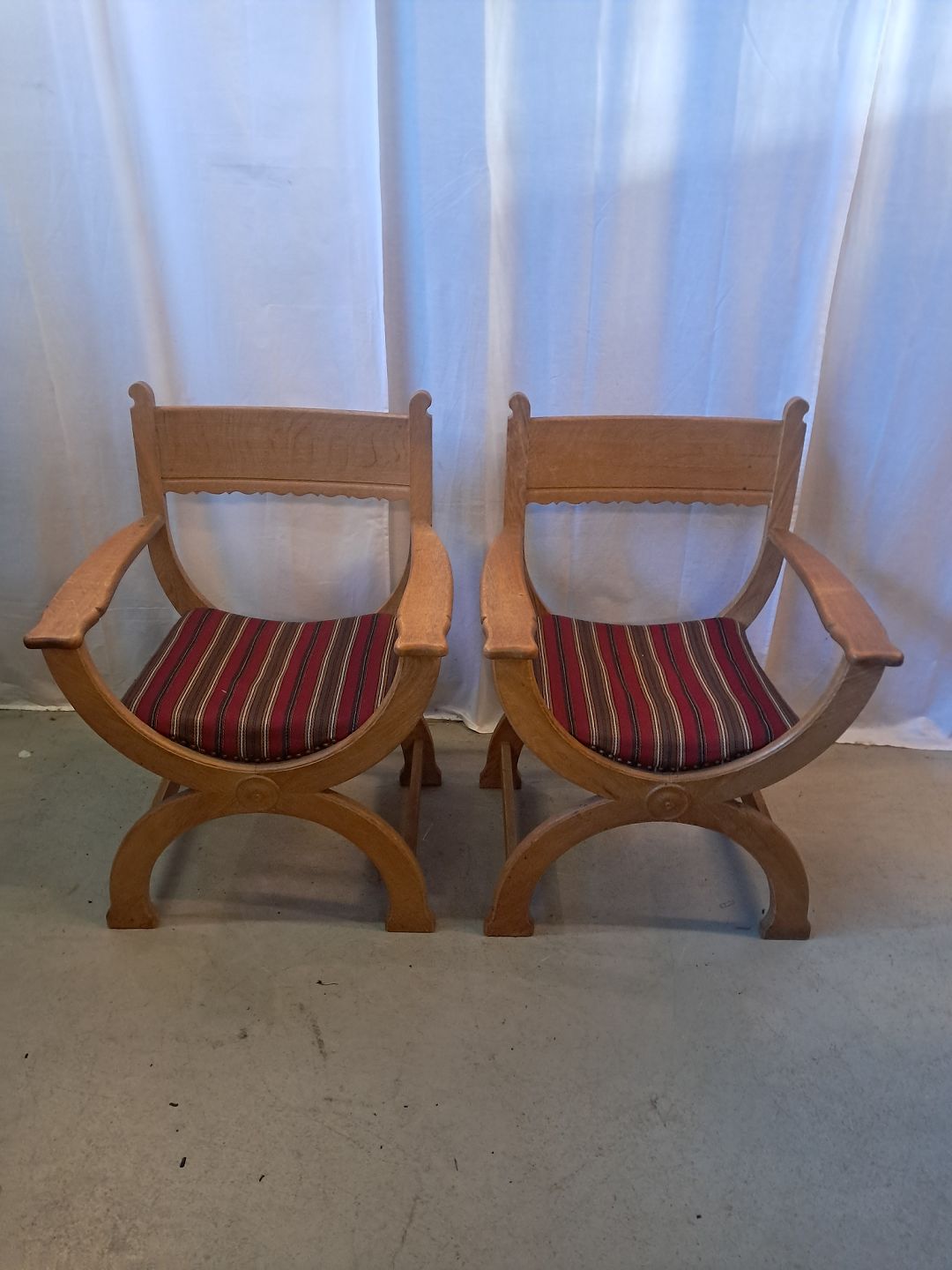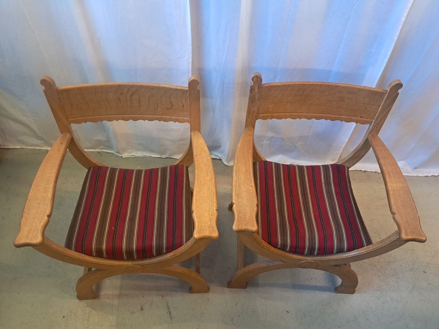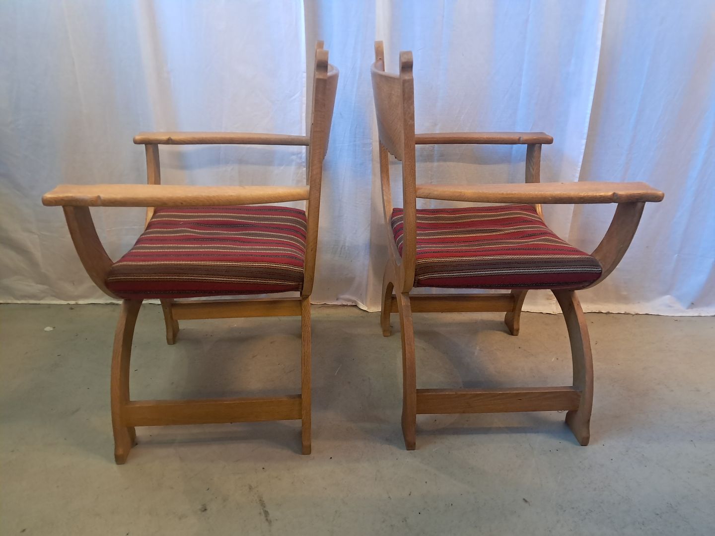 2 Armstole i massivt egetræ, fra 1980erne. De har brugsspor. Ryghøjde 88cm Sædehøjde 45cm Emne nummer: 77863