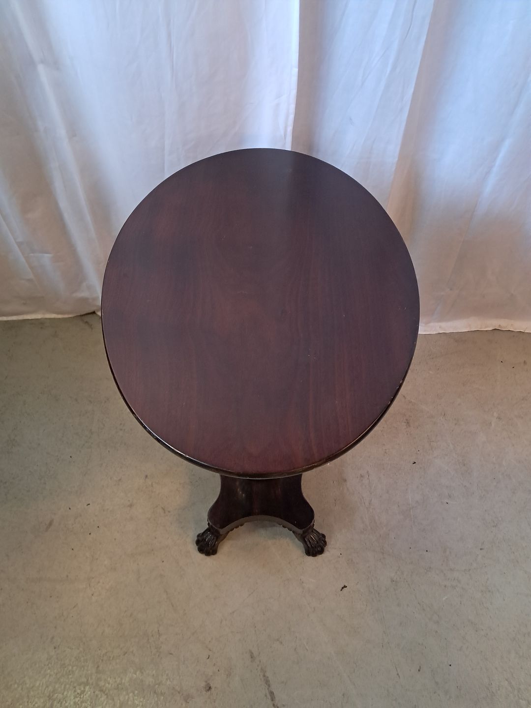 Søjlebord i fineret mahogni, fra 1910erne. Det har brugsspor. Højde 73cm Bredde 57cm Dybde 43cm Emne nummer: 77875