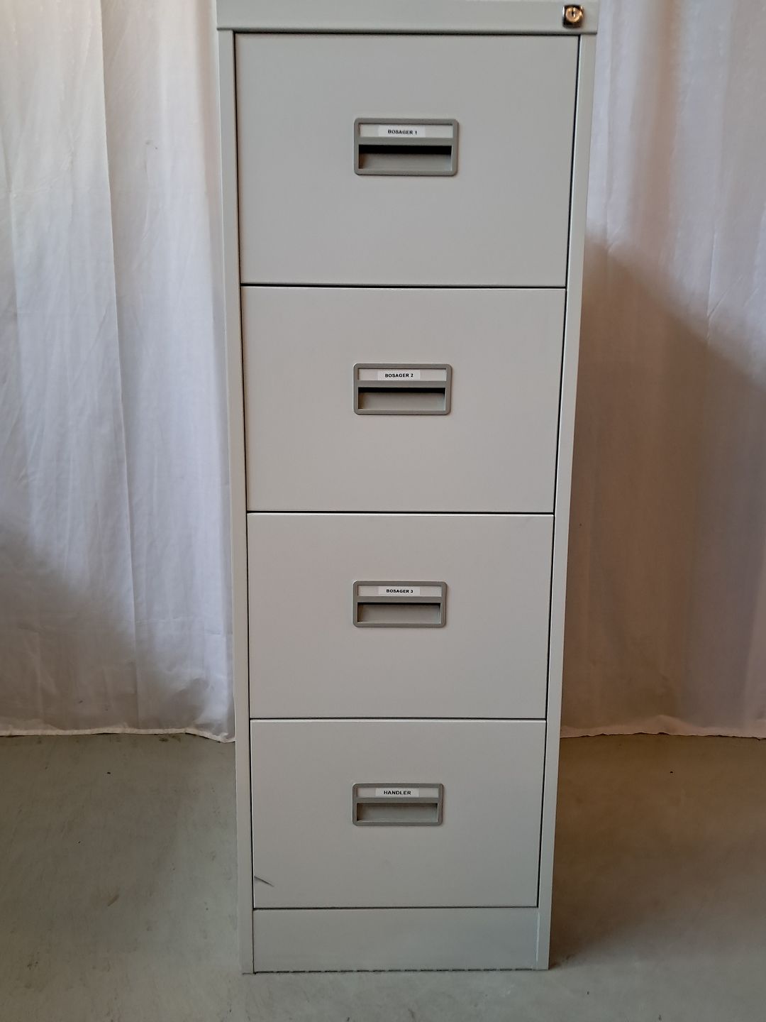 Malet metal kommode/arkivskab, fra 1990erne. Det har brugsspor og der medfølger ikke nøgle. Højde 132cm Bredde 47cm Dybde 62cm Emne nummer: 77916
