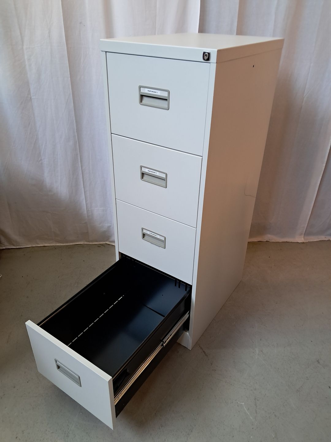 Malet metal kommode/arkivskab, fra 1990erne. Det har brugsspor og der medfølger ikke nøgle. Højde 132cm Bredde 47cm Dybde 62cm Emne nummer: 77917