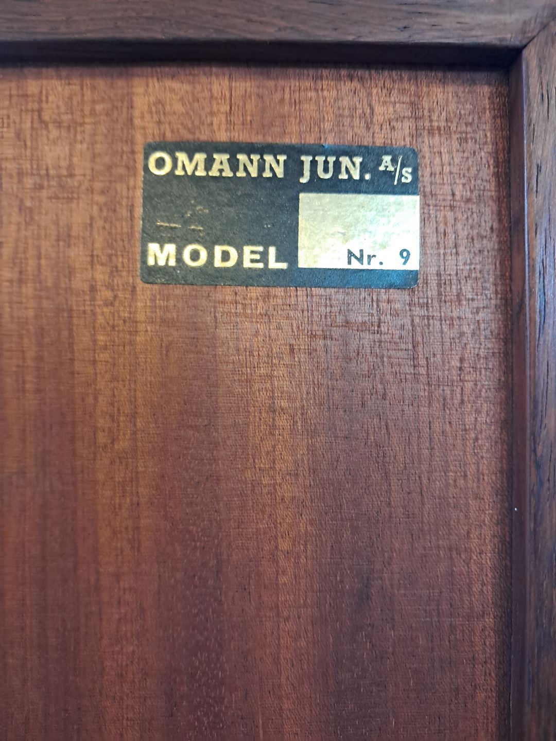 Omann Jun. 2 Delt reolsektion i fineret palisander, fra 1960erne. Den har brugsspor. Højde 187cm Bredde 120cm Dybder 43cm og 29cm Emne nummer: 77928